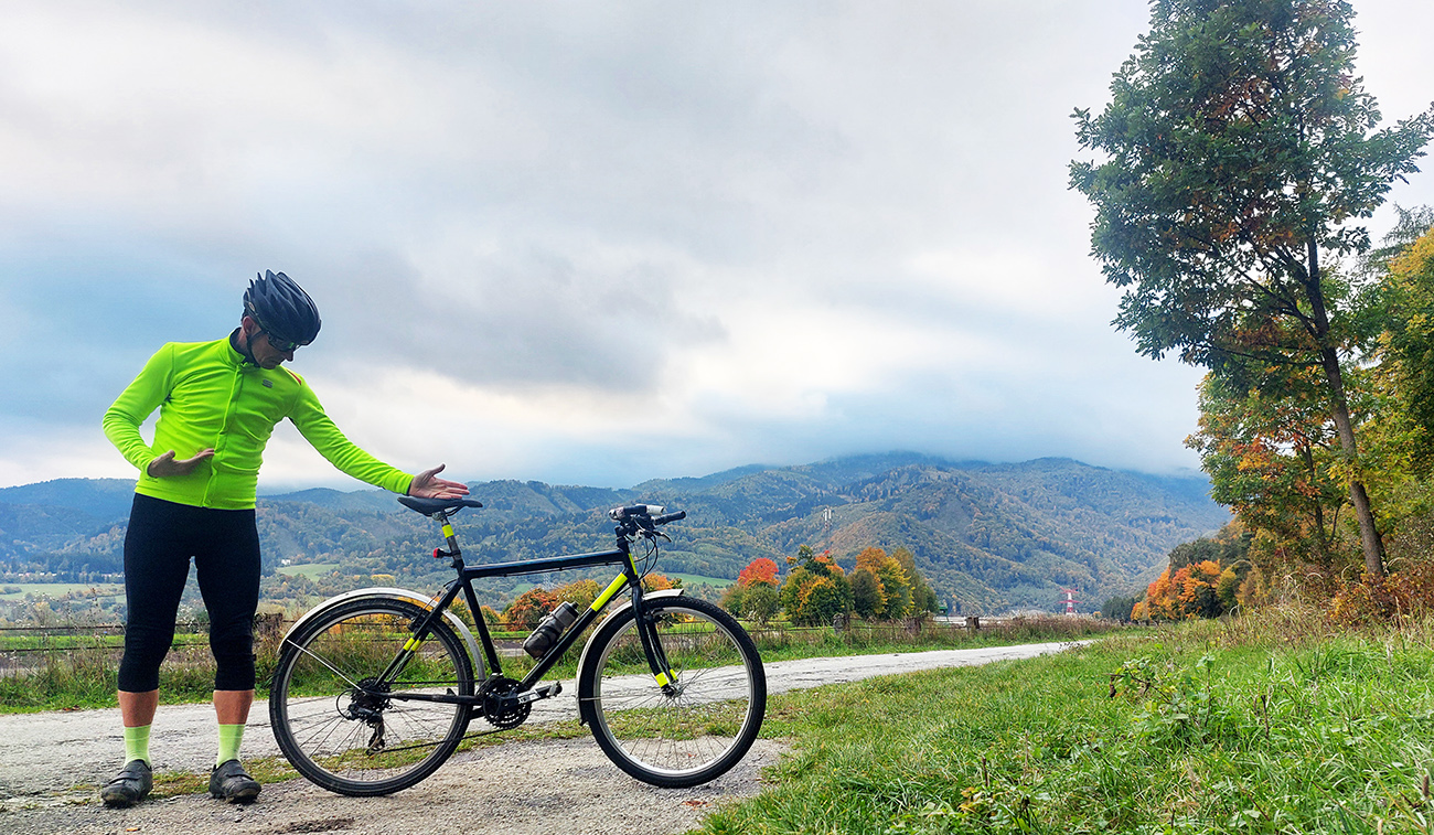 Aj vzpriamenejší posed na „graveli“ je fajn – naobliekaný ako cibuľa, nechce sa mi krčiť do aeropozície. Aj keď zas – pri priemerke 15 km/h by sa hodila. Určite! Ale aspoň si pohodlnejšie poobzerám krajinu. Čo na tom, že ju zväčša nevidno. Vďaka hmle alebo tme. Najlepšie aj aj.