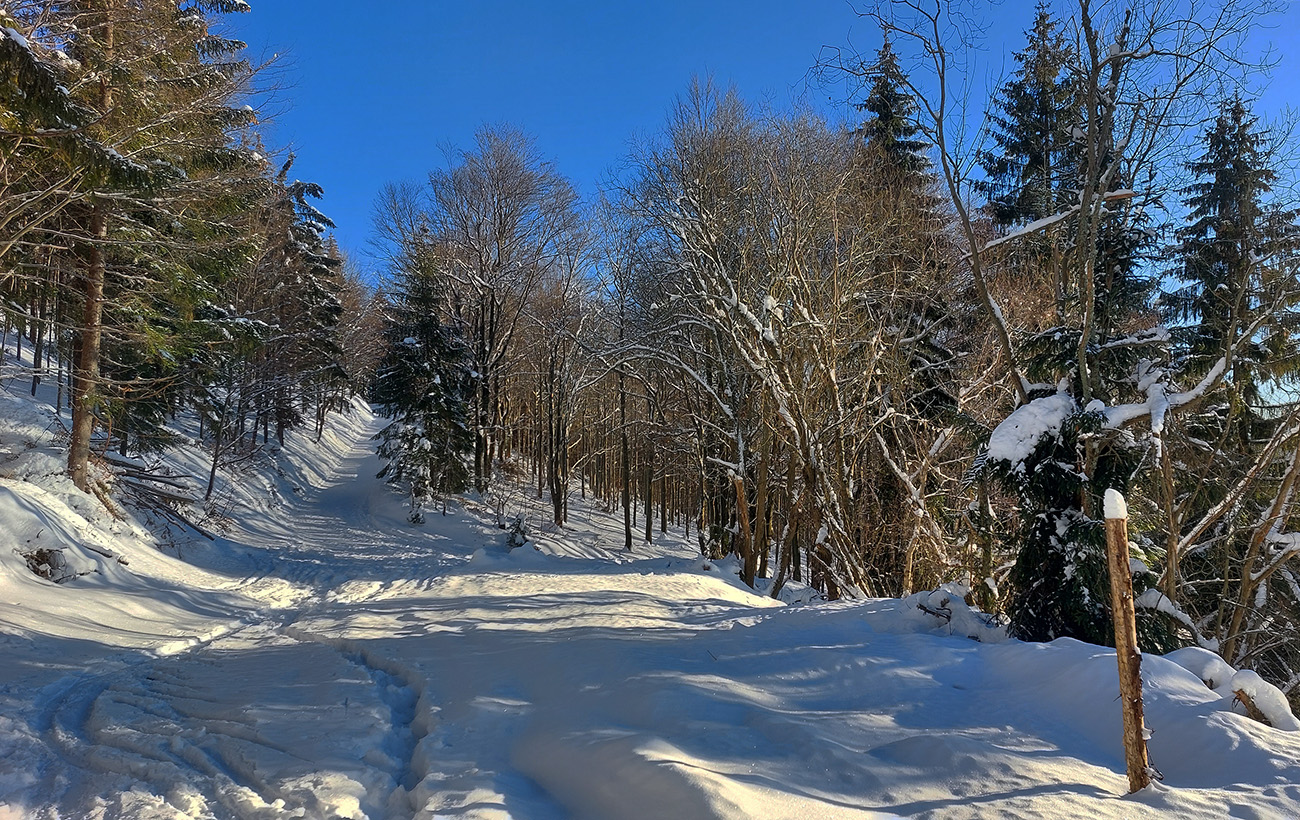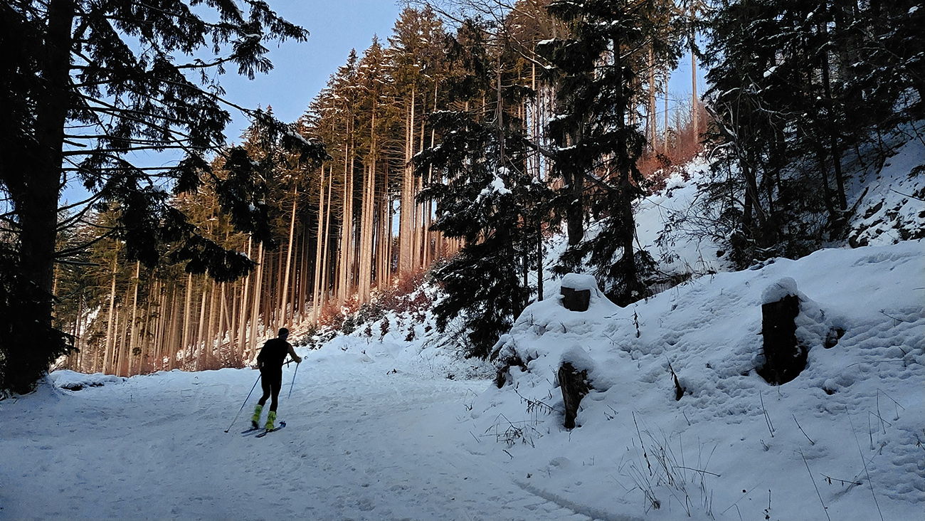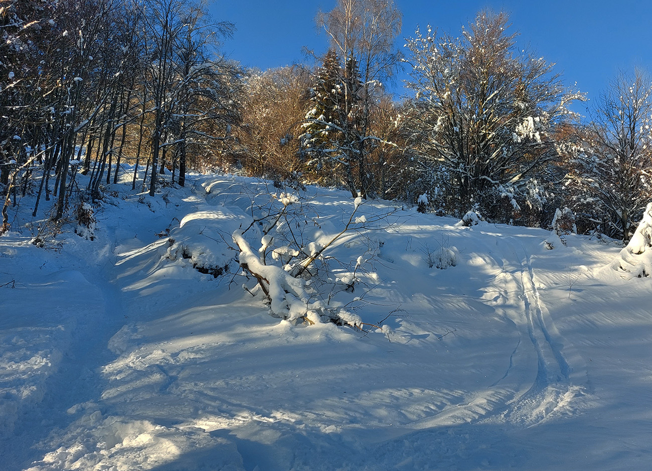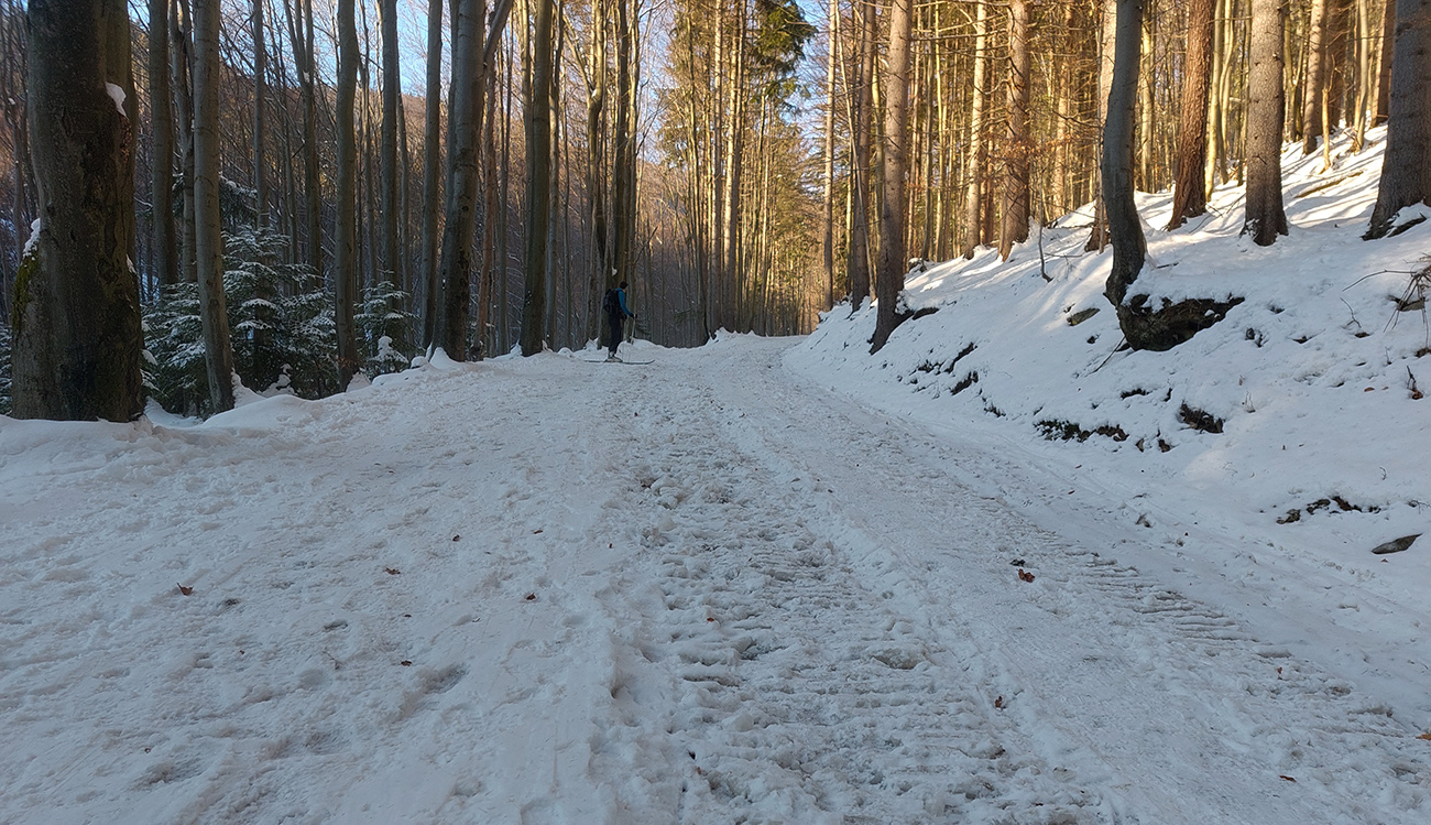Nad skládkou skialpová výstupovka vyleštená a tradícia pivnej smerovky obnovená, chlpatí lyžiari majú z toho isto radosť. Zostupovka je ale najlepšia po ratračej ceste, lebo v lese okolo zelenej značky je ešte slabý základ a silná krusta. Ale pár hrdinov to už skúšalo spod skládky dole rúbaniskom zjazdiť, až na zelenú značku. Hmmm...
