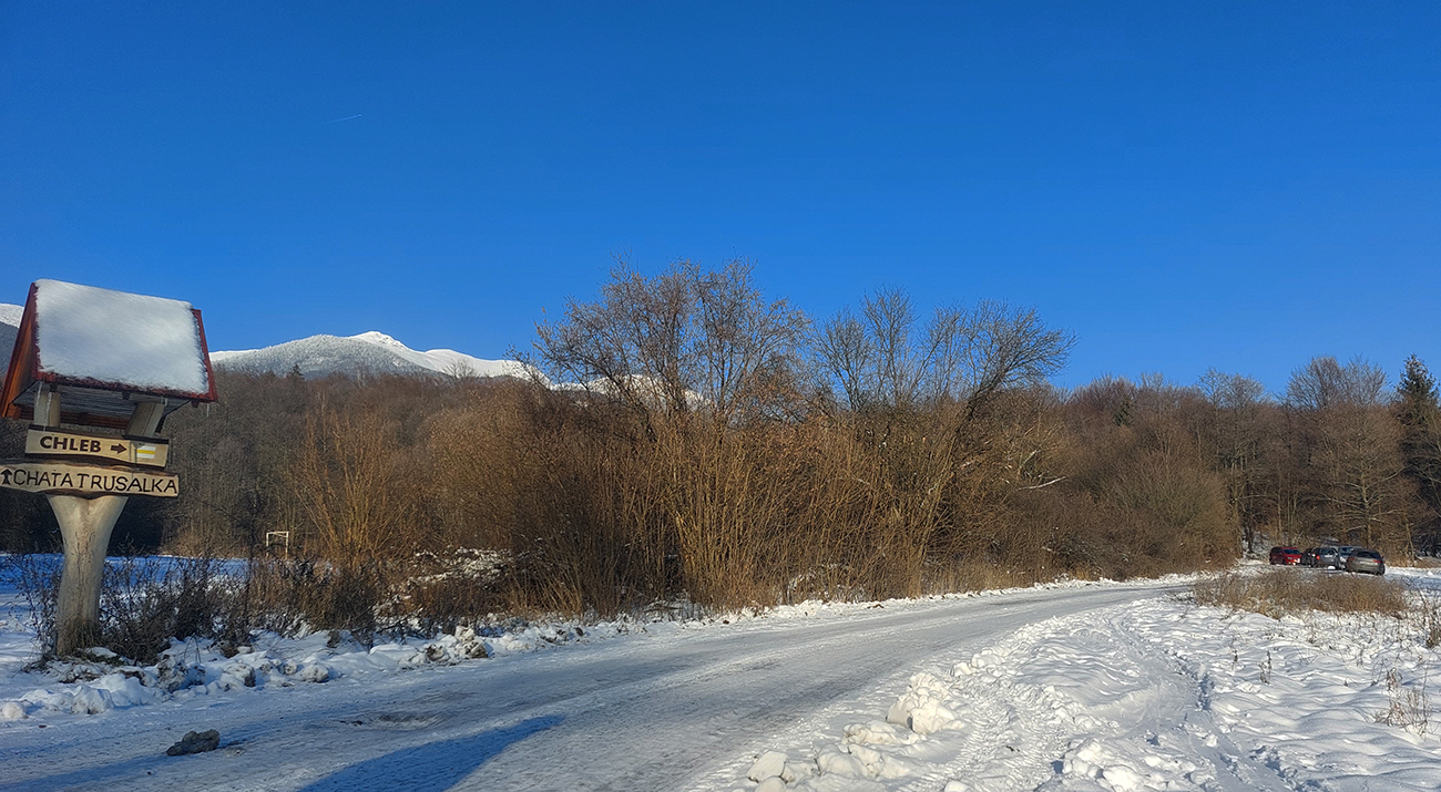 Druhá hlavná destinácia je samozrejme Chleb. Z konca Šútova sa vraj dá smerom hore po lúkach v pohode, smerom dole je to pod lúkou v kroví ešte moc kamenisté. Ale to len z počutia (vďaka za info). Z Trusalovej úvod po lúke vyzerá suprovo, ale hneď ako odbočuje žltá značka z cesty, je to tragédia: