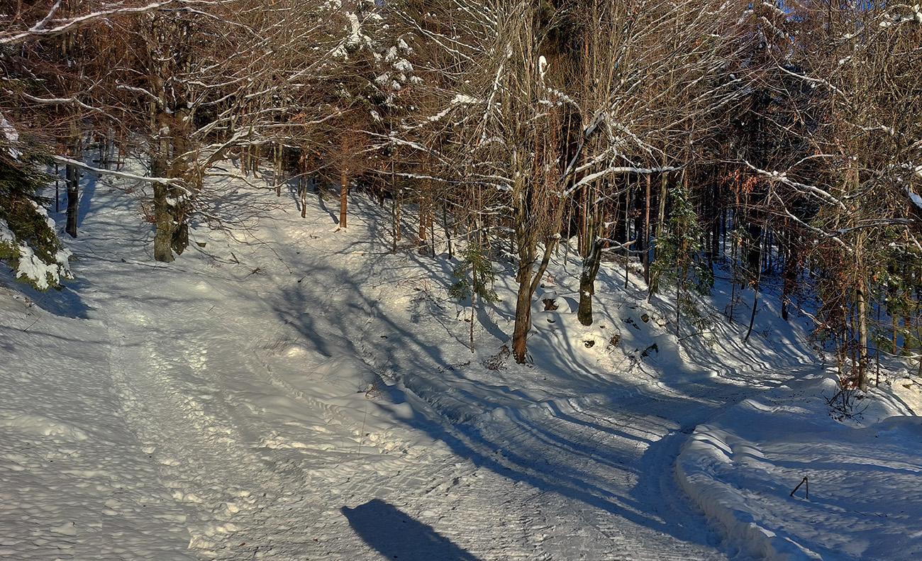 A keby len z jedného! Čo sme my turčianski pašienkári horší od Tatrancov? Zásadná informácia (pre cezpoľných, domáci výšľapisti vedia): hlavné malofatranské nástupné miesta z turčianskej strany - dá sa! Teda aspoň tie hlavné, na pohlavné nebol čas. Ale najprv nevyhnutný súhrn ostatných výčinov počasia: keď konečne nasnežilo, potom na to v piatok 16.12. napršalo a hneď to v noci aj zamrzlo. Našťastie ten hrboľatý ľad zároveň trochu pocukrovalo. Teploty ako na hojdačke, ale výsledok pozitívny, lebo na Martinské hole sa dá už od mostíka pod starou lanovkou - a dokonca pri troche opatrnosti sa tam dá aj zlyžovať, čo teda v tomto čase nebýva zvykom. Citlivejší sa zapnú a vypnú na prvej serpentíne. Síce sa tam niekto magoril autom zhora až dole, just keď to bolo natopené, ale miesta dosť okolo tých koľají. Aj dva úseky pod delom, pod najhustejšími korunami smrekov, kde je vždy málo snehu a zvyknú trčať šutre, sú zjazdné obojsmerne.