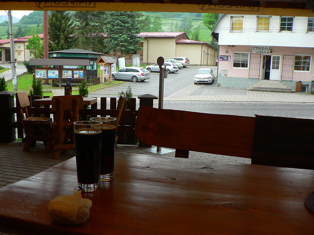 Nakoniec najväčší adrenalín na koniec :-) Lebo na moste do Námestova síce chodník je, ale pred ním a za ním nie - a premávka taká, ako keby ani víkend nebol. Ešte že je cesta široká. Ale po chvíli už si nadeľujeme tretí raz (tentokrát za odmenu) po pol litri fajnej, čapovanej a k nej si dovoľujeme aj hranolky – aby bol ten fástfúd dokonalý. A z lavičiek amfiteátra vychutnávame oravské leto a vzdialené kumulonimby, kým nedorazí odvoz – tri pekné dievčatá, ešte aj šaty majú navzájom zladené. Len škoda, že všetky tri sú Majove, no nič. Akurát stíhame čiastočne uschnúť a pekný výbeh je za nami. Vďaka Majo, že si to vymyslel, aj že si ma prehovoril a zobral so sebou – aj s rizikom, že ma budeš vliecť na chrbte :-)