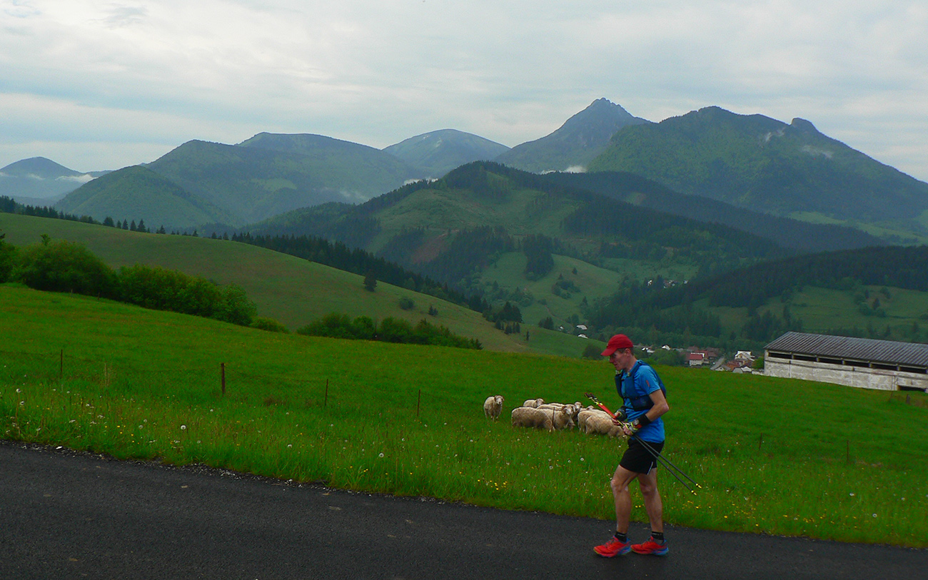 Krytá terasa je tichá, ale kým donesiem prvé dve dnešné kofoly, rozšumí ju hustý dážď. A toto čo má byť? Našťastie pohľad spod celty ukazuje, že je to len prehánka. Tak po chvíli už odhrýzame prvé metre z takmer deviatich kilákov stúpania na Minčol. Romantické panorámy s fajčiacim Rozsutcom a ovečkami na paši. Zatiaľ vládzem, a aj keď takéto výlety chodím na normálnej strave, dnes som nechcel nič podceniť a radšej som nabral „chémiu“. Takže je čas na malú reklamu, lebo som si povedal, že vyskúšam gély SPRING, ktoré nám poslali chalani z RALPU (od nich máme aj hodinky):
