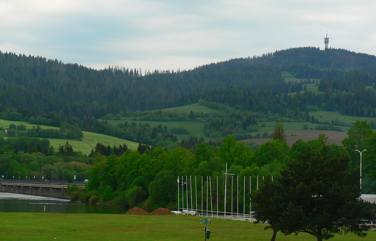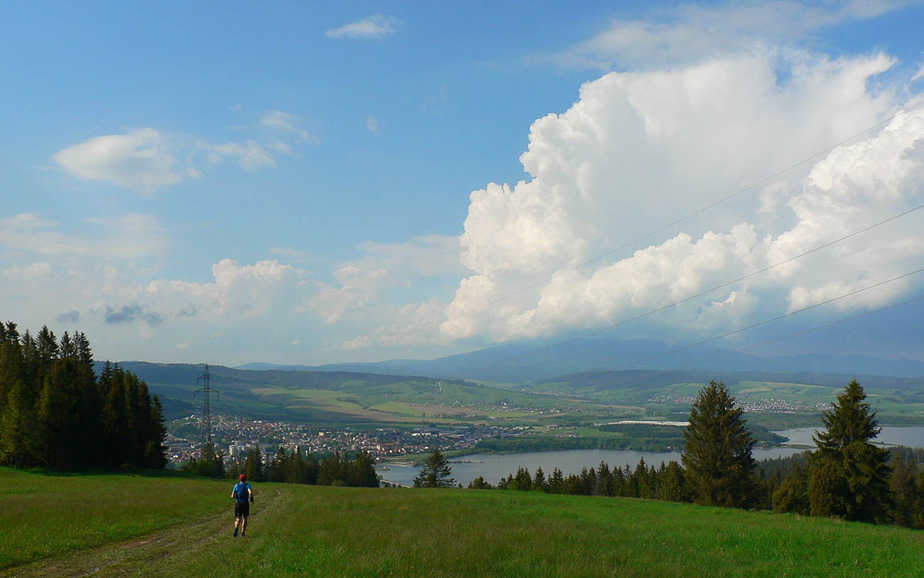 Ale koniec dobrý, všetko dobré – búrka odtiahla nad Roháče a ako sa blížime k vysielaču, už svieti slnko a všetko okolo je ako vyumývané. Doslova :-) Od vysielača máme (cez rúbanisko, ako inak) parádny výhľad na okolie priehrady. Ešte nachádzame jednu studničku a už asfaltujeme dole do Námestova. Mapa ukazuje dlhý zbeh lesom, ale je tu aj jedno „okno na lúky“ cez kríky pri ceste. A z toho okna vidíme priamo pod nami most cez priehradu. Tak načo obchádzať? Veď po lúkach sa k nemu nejako predsa dostaneme. Aj cesta je vydupaná, aj párik na štvorkolke sa proti nám zdola rúti – a jeho stopy nás neomylne vedú. Taaak, v pohode až dole na cestu.
