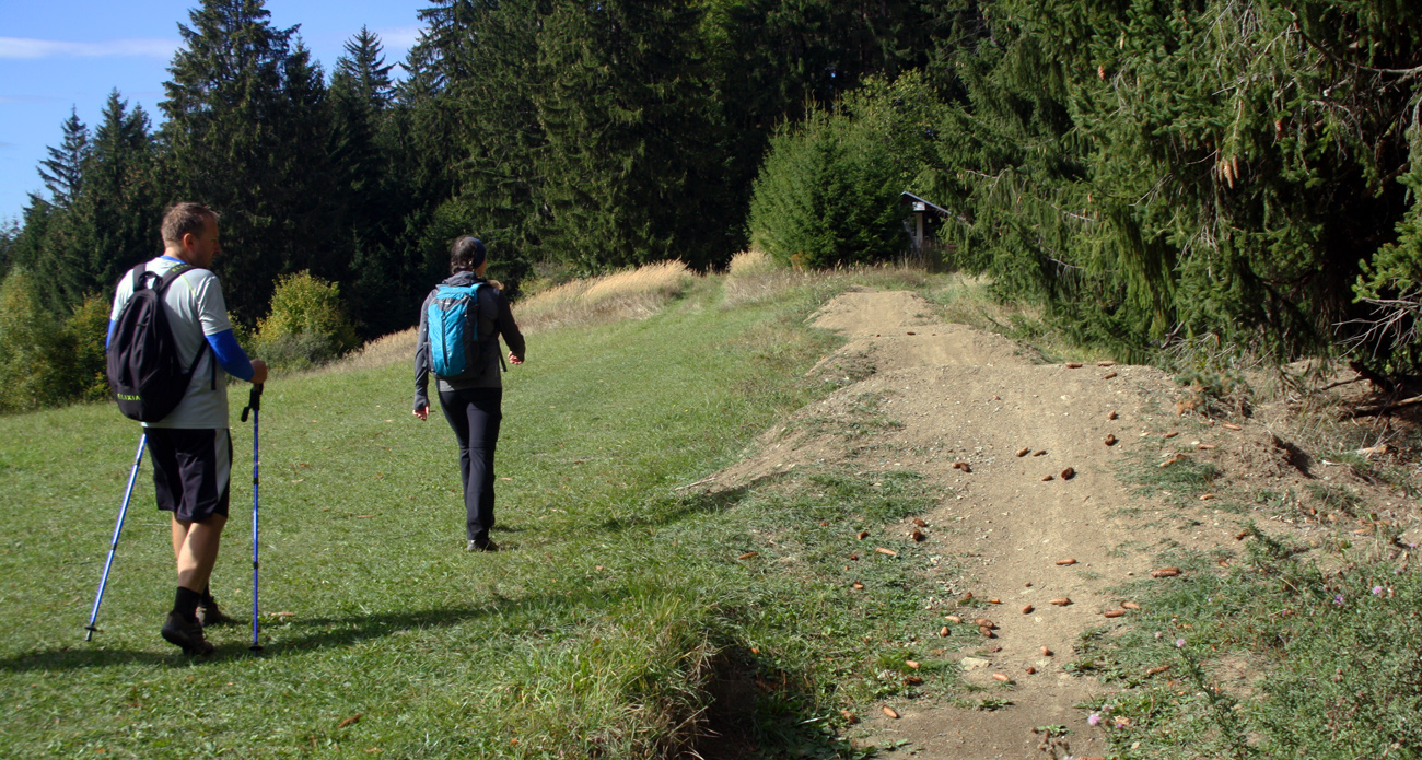 Užívame si ich až na Poľku, potom schádzame strmšie dole na cestu a pár chvíľ dupeme bez výhľadu lesom. Na koniec už taká striedačka lesy/lúky voľne z kopca, až po hornú stanicu lanovky. Lebo odbočku po zelenej lesom nazad na Kašovú ignorujeme, po lúkach je to krajšie. Aj na nich ešte sem – tam niečo kvitne. Dole už čaká chata Kaška, kde čapujú hádam od počiatku sveta. Aj citronádu teta spraví, no sveta žiť. Niečo cez štyri hodinky nám to celé trvalo a vôbec sme to nehnali, totál na pohodu.