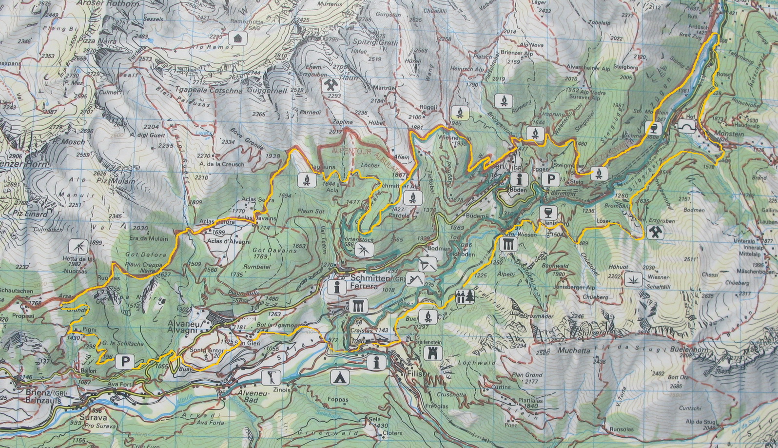 Jediné možnosti občerstvenia sú v osadách Wiesen a Monstein.