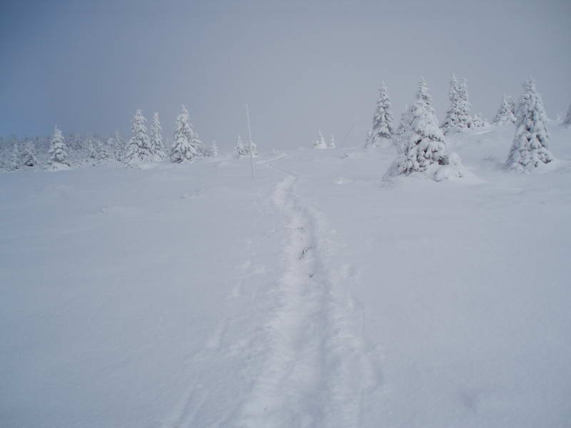 Na Malej Babej hore, už pofukoval celkom slušný vetrík. Urobili sme ešte pár posledných záberov a digitál už zamrzol na kosť. A tak opäť po hrebienku ale už smerujúcom na Slanú vodu, po červenej značke schádzame dole. Nechýba brodenie sa v prašane, obchádzanie popadaných stromov v lese a takisto nudná niekoľkokilometrová cesta k autu.