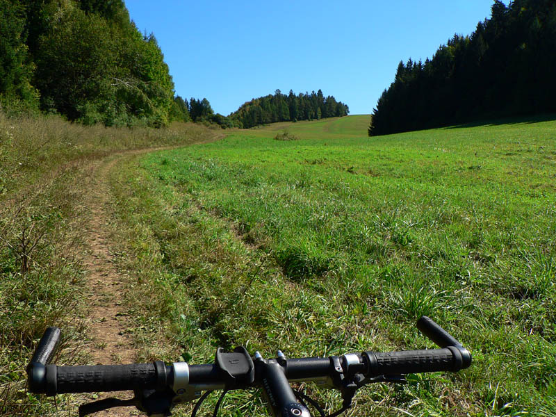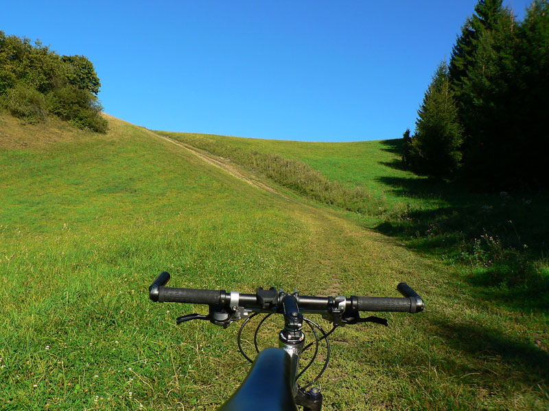 Tam sa dá blbnúť hodiny a hodiny a vidieť odtiaľ na kilometre a kilometre. Ak je teplo, dá sa zájsť po zvážniciach lesom v chládku až na lúky pod Lyscom, ak príde smäd, stačí odbočiť k niektorému salašu a hádam čohosi nalejú :-) Alebo do niektorej z chát v Jasenskej. Povrch je vypasený ako golfový trávnik, bonusom sú ovčie bobky. Treba mať blatník (hovník) aspoň pod bidónom :-)