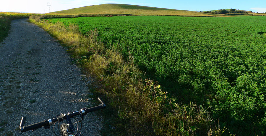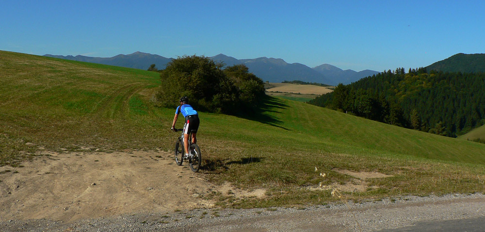 Turčianske podhorie Veľkej Fatry je tak akurát kopcovité, tak akurát premenené na polia, lúky a ostrovčeky lesov, tak akurát široké pre hustú sieť ciest. Komu netreba single v lese a technické bajkparky, kto sa rád vozí krajinou s peknými výhľadmi, tu si príde na svoje. V okolí „bajkpozitívnej“ cesty SNP. Aj keď nie je domorodec, stačí napríklad vyložiť bajk z vlaku na vrútockej stanici, prejsť cez Priekopu , najväčšiu na svete :-) a poza martinské sídlisko Košúty II ho zelená cyklotrasa dovedie na miesto činu. Na ktorejkoľvek odbočke z nej človek zíde, neoľutuje. Najmä smerom k hore. Takže tento článoček nemá ambície robiť sprievodcu, skôr navnadiť a podeliť sa o radosť z jazdy. Make bike, not car!