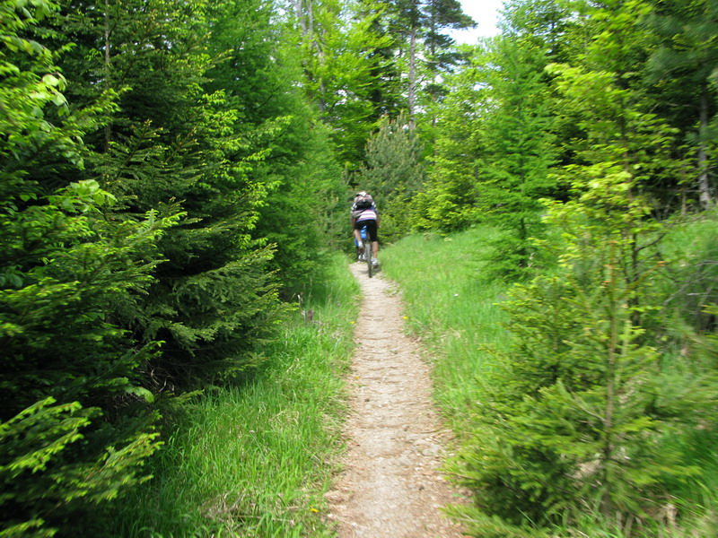 Tu sa so značkou lúčime. Odbočujeme vpravo a širokou cestou sa púšťame po lúkach mierne dole. Cesta sa po chvíli stretne s červenou značkou vedúcou do osady Píla v ústí rokliny Piecky. V týchto miestach sa široká lesná cesta pomaly mení na úzky chodníček a po niekoľkých terénnych hupoch nasleduje nádherný zjazd, miestami okorenený technickým singltrailom.