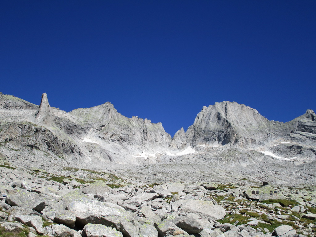 Smer passo Trubinasca už vedie taký klasický žulový chodníček, teda poskakovanie z kameňa na kameň. V sedle už nie je žiadny sneh, o to rýchlejšie ním prechádzam. Traverzujem dolinkou popri bivaku Pedroni, stretávam skupinku talianskych lezcov, ktorí dali včera Hranu a po nocľahu na chate Gianetti sa vracajú naspäť.