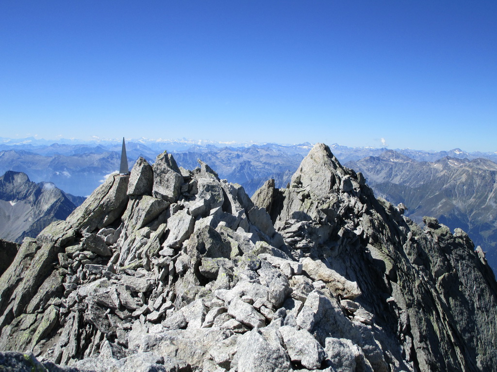 Zastavujem až hore. Miestami to bolo krásne lezenie. Vrchol Badile v ideálnom počasí ponúka dosť dobré výhľady.