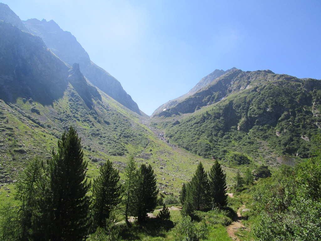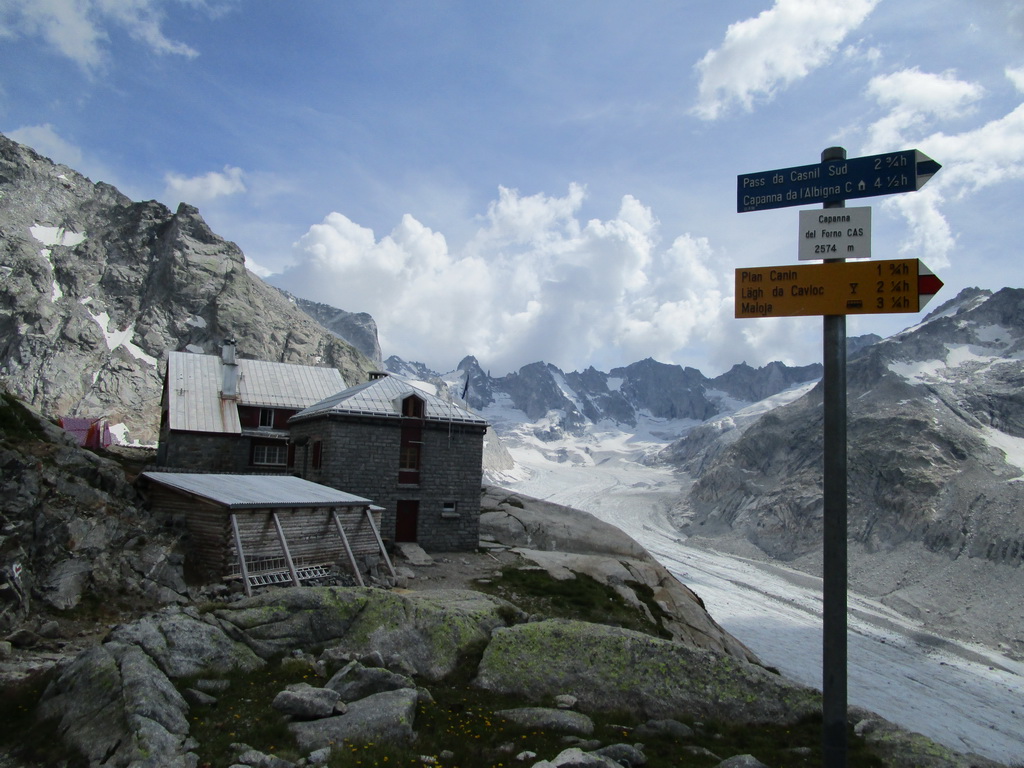 Pokračujem ďalej okolo miestneho hospodárstva so zvieratkami rôznych druhov. V týchto miestach vedie chodníček nádherným alpským lesom s lúčkami a mokraďami. Z lesa sa vynáram pri odbočke na passo Muretto. Tu les pomaly končí. Pokračujem doprava smerom do Val Forno. Neskôr sa napájam na nový a čerstvo značený chodník vedúci do sedla Casnil Sud. Chatár z Fornohutte Beat tu s pomocou pár kamarátov urobil veľký kus práce. Preložili starý chodník a z veľkej časti vytvorili nový.