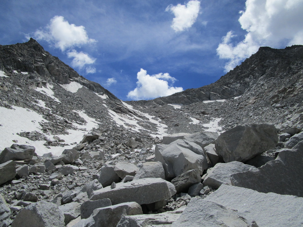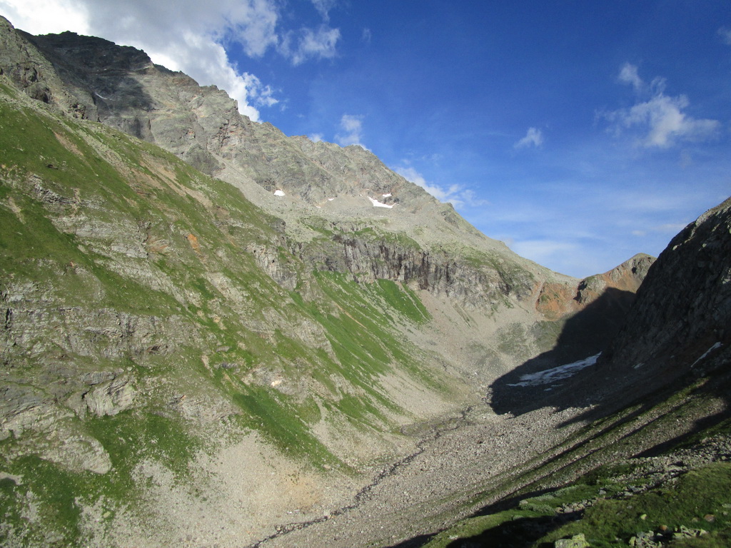 Zostúpim na začiatok hrebeňa ktorým som liezol hore do tzv. Pass Casnil Nord. Odtiaľto by bolo výhodné zbehnúť rovno dole do doliny čo sa mi aj darí...