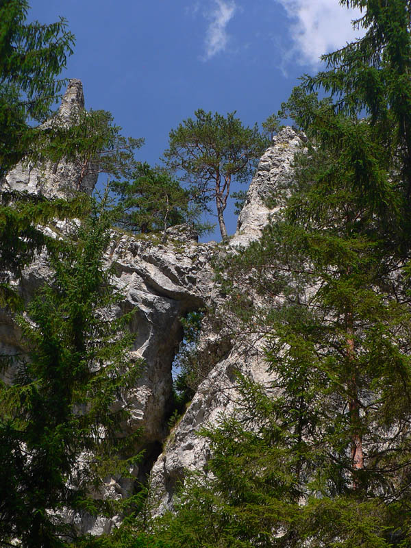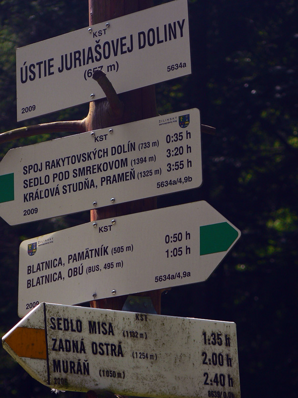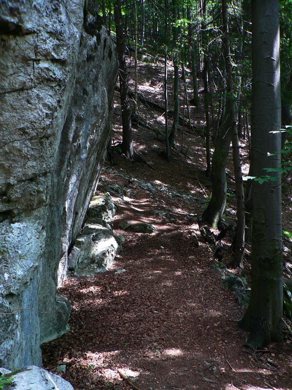Hodinu od ústia žltá odbočka do doliny Juriašovo znamená koniec prechádzkovej srandy. Na Ostrú je blízko, ale ako hore strechou! A ešte južným svahom, v lete dokonalá rozkoš :-) Ešte že v tieni lesa. Po pár sto metroch posledná možnosť dotankovať – z bočnej dolinky vyteká čosi, ale len taký cícerok. Inak je Juriašova suchá, chodník riadne prašný, rozchodený na kašu, len zopár odpočinkových serpentínok na obídenie skalných prahov. Najkrajší je keď opadnú listy, to vidieť žiarivo biele steny naokolo.