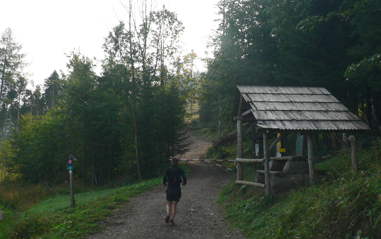 Tak sme sa vylodili z busu na rázcestí nad Hutami, po deviatej ráno. Tiež by bolo lepšie skôr štartovať, ale čo už, keď nič iné nešlo. Trochu asfaltu oproti autám pod Bielu skalu na úvod, s cieľom napojiť sa na červenú. Potom veľa rúbanísk a trochu blata v úvodnom stúpaní lesom na Sivý vrch.
