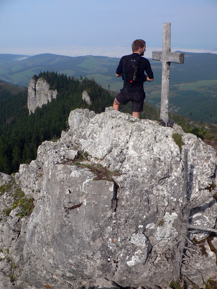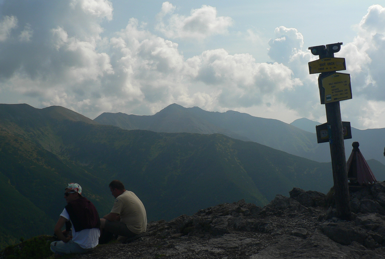 Sivý vrch pred jedenástou: vlhký letný opar. Ďaleké výhľady len v snoch, dusno ako v práčovni, ale na oblohe zatiaľ žiadne nebezpečné kumuly, len malé bacuľaté vežičky. Zhodnotili sme, že minimálne na Brestovú to dáme.