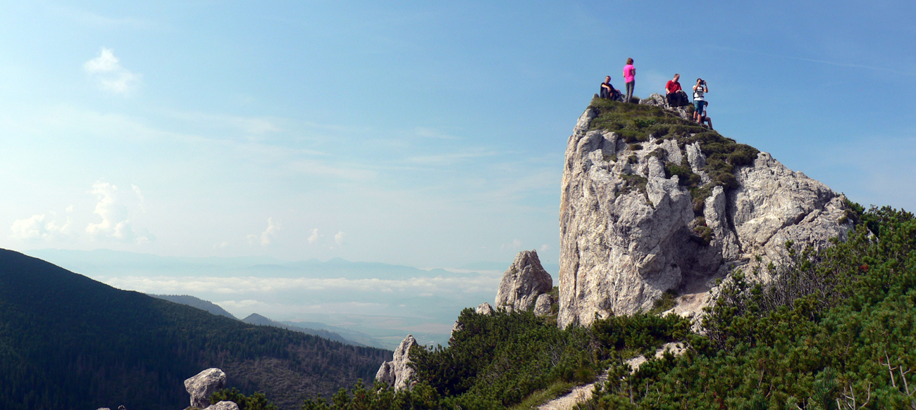 Samozrejme ako klesala výška stromov, dvíhali sa z lesa bralá, až prerástli do skalného mesta, ktoré je nádherné v každej ročnej dobe. Kto tam už bol, vie. Nejaké malé zápchy na krátkych reťazových úsekoch už boli. Niečo sme počkali, niečo sme predbehli, s dovolením a poďakovaním.