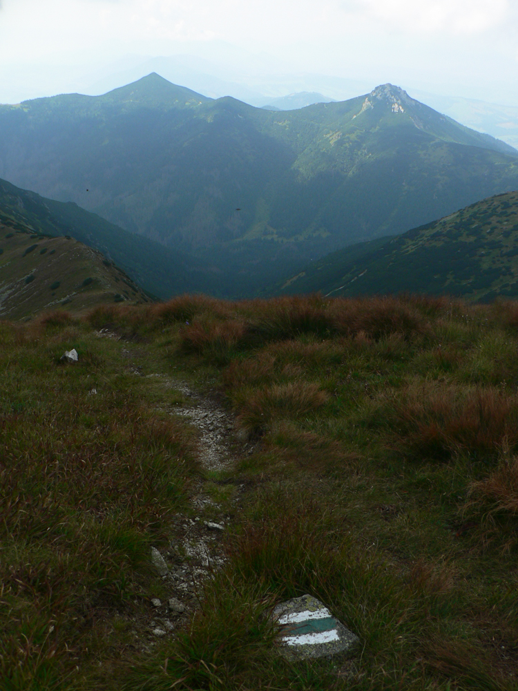Pod Brestovou už konečne pofukovalo, aj kosovka skončila, tak od múch pokoj. Aj chodník je tu širší, tak sme sa s protiidúcimi pohodovejšie obchádzali, aj pohľady (aspoň do priľahlých dolín) boli cez ten opar lepšie.