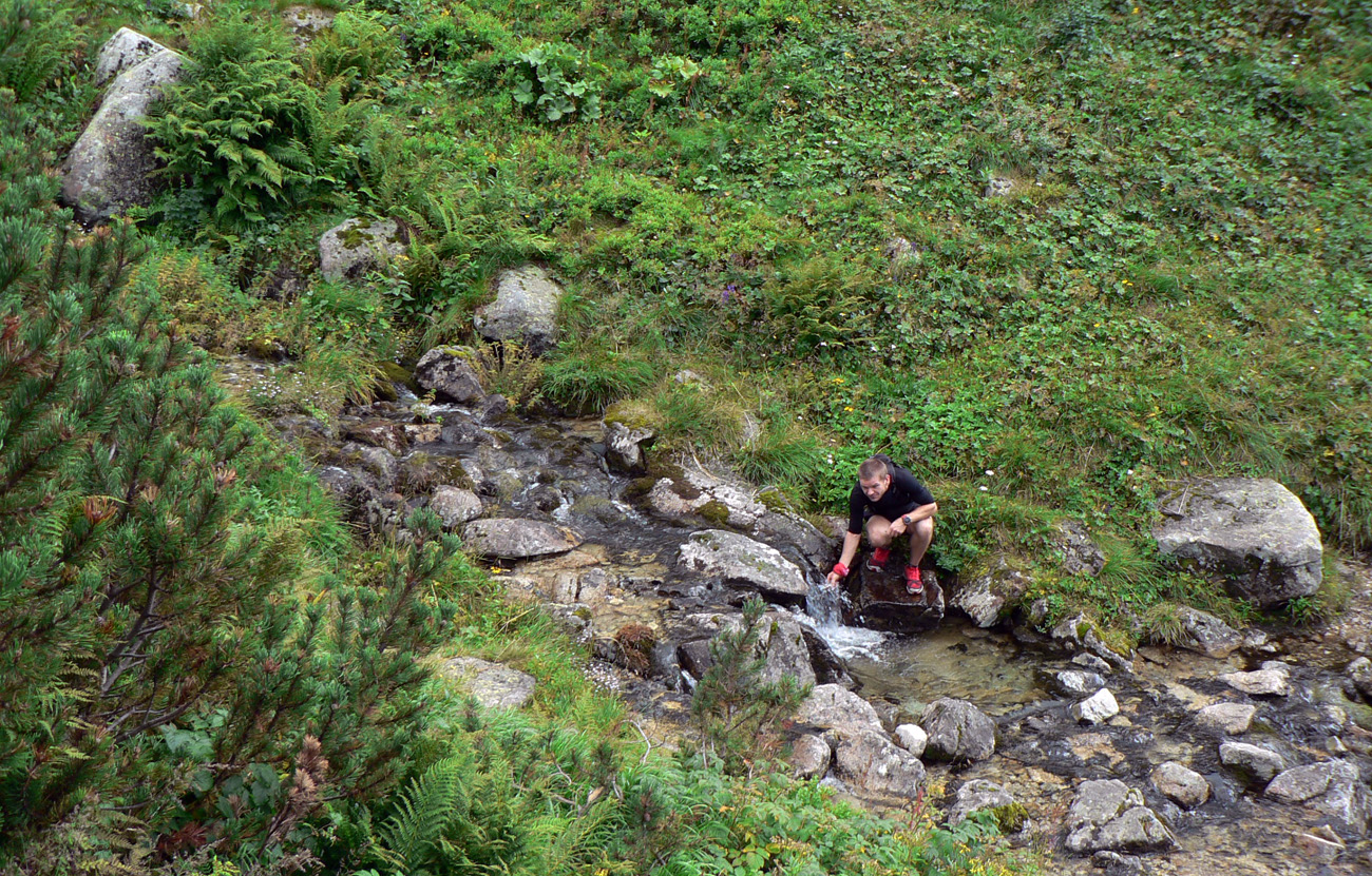 Zelená značka do Hlbokej doliny bola naša voľba, vlastne aj jediná zo Salatína, ak sme sa nechceli vracať a schádzať na oravskú stranu. Na začiatok poriadne strmo dole po trávach, ale v relatívnom bezpečí pod hrebeňom sme to nehrotili a stihli sme aj dáke čučoriedky okoštovať. Aj v potoku dotankovať.