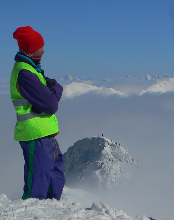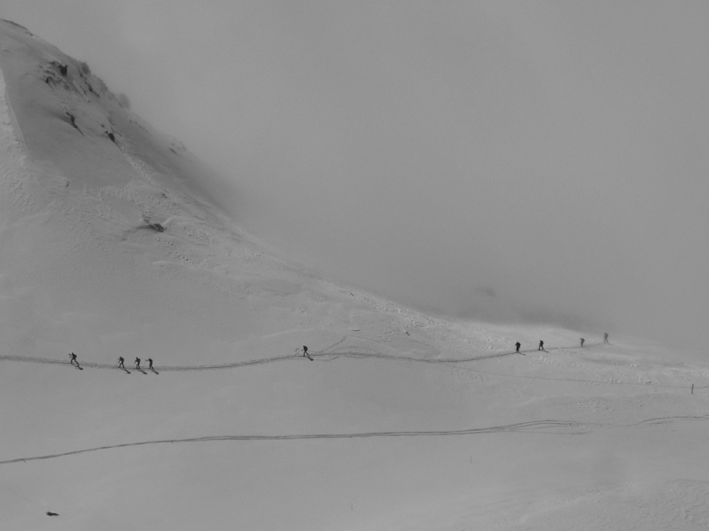 Hmla sa ešte dvihla, na Terase viditeľnosť dobrá, ale pod Lúčnym sedlom mlieko a ťažký, lepivý sneh. Zato hore nádhera. Ale aj tu už sa slnko opieralo prisilno, sneh vlhol a trochu lepil. Na odfúkaných miestach trčali šutre, pričom o dva metre vedľa mohol byť polmetrový závej. Na lyžovačku nič moc, Hovorili viacerí pretekári, že to bola riadna morda dole kopcom. Deň pred tým sa síce nedostali cez hrebeň kvôli vetru a hmle (a z cieľa ich museli odviezť na Liptov autobusmi), ale na oravskej strane vraj bol aspoň parádny prašan.