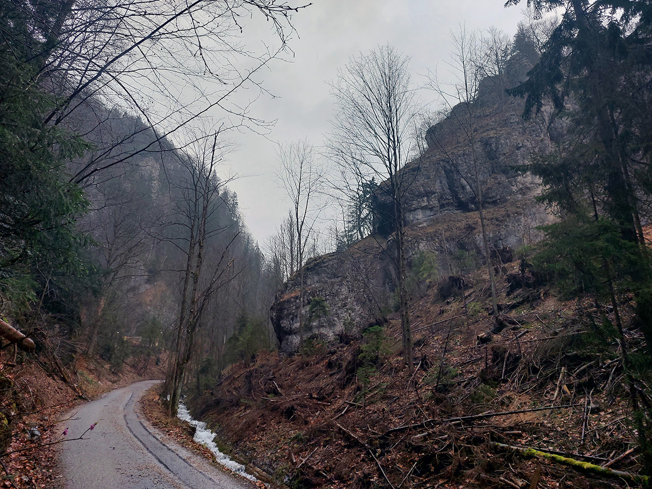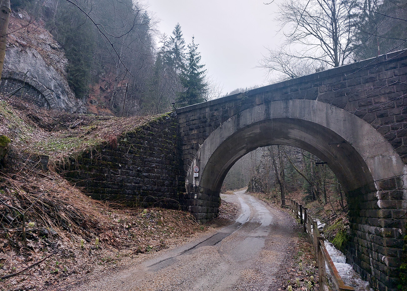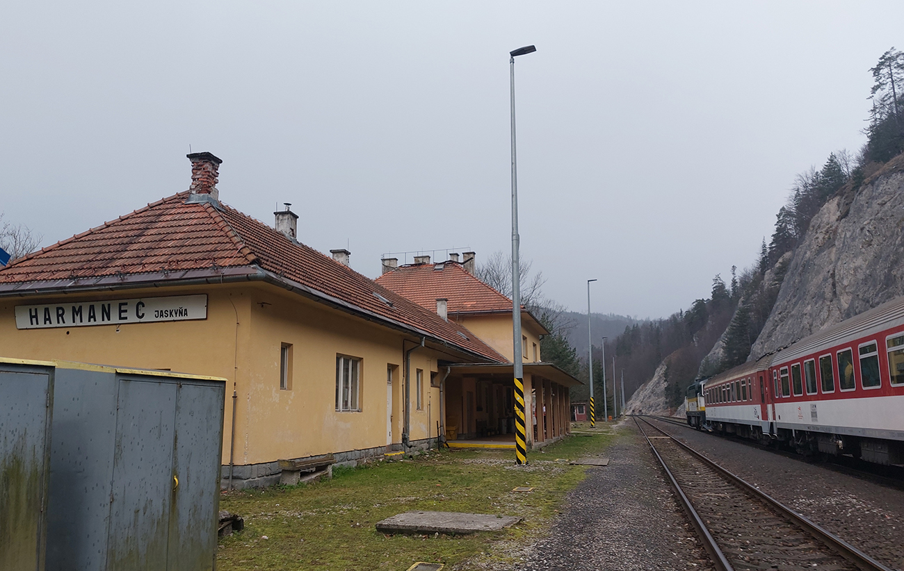 „Náš vlak zastavil z prevádzkových dôvodov, neotvárajte dvere a nevystupujte.“ Nerešpektujem, otváram, vystupujem. Lebo v stanici Harmanec jaskyňa sa rýchliky Fatrany teraz križujú a musia sa čakať. No nevyuži to! Lebo inak sa sem ťažko dostať, jedine z BB emhádečkou. Je akurátnych sedem ráno, sivotu končiacej predjarnej noci nahradila denná sivota, lebo je tu front. A začína fajne pršať – ale s tým sa rátalo, lebo by veľmi dlho nemalo. Či som zmoknutý alebo spotený, to je skoro jedno. Tak klušem po asfalte k najdlhšiemu československému železničnému tunelu, vyškerený pri spomienke, ako kyslo sa tváril vlakvedúci aj osadenstvo stanice. Výhľady dnes nebudú, mraky visia nízko, aj preto som dnes zdrhol sem – lebo na trase je strááášne veľa skalnej výzdoby, typickej pre bralnú Fatru. A stromy ešte neolistené, bude tie veže a bralá dobre vidieť. Mal by som skončiť v Turčianskych Tepliciach, ale kadejakými zachádzkami. Okrem toho tunela okolo jaskýň Dolná a Horná Túfna, Suchým Rakytovom dole, Rožkovou dolinou hore, na Drienok, z neho dole dolinou Mača, cez Rakšiansku a Nedozorskú dolinu na Čremošnianske lazy a z nich už dole do Teplíc. Taká motanica, plus nejaký tréning, plus prepojenie pár miest, kde som ešte nebol, alebo ak hej, veeeeľmi dávno – kvaple v Túfnej za ten čas už isto podrástli: