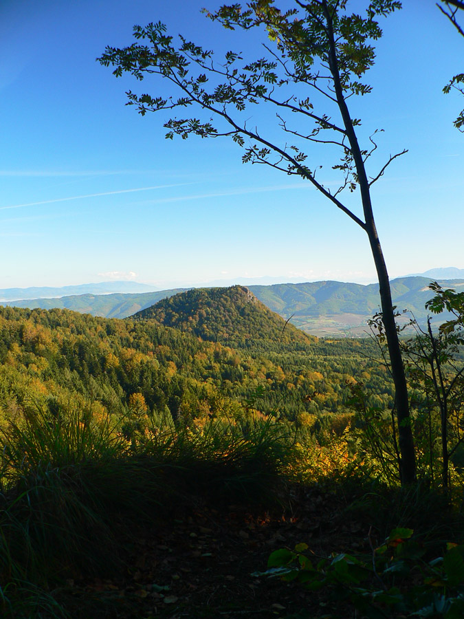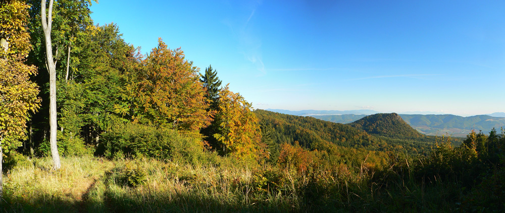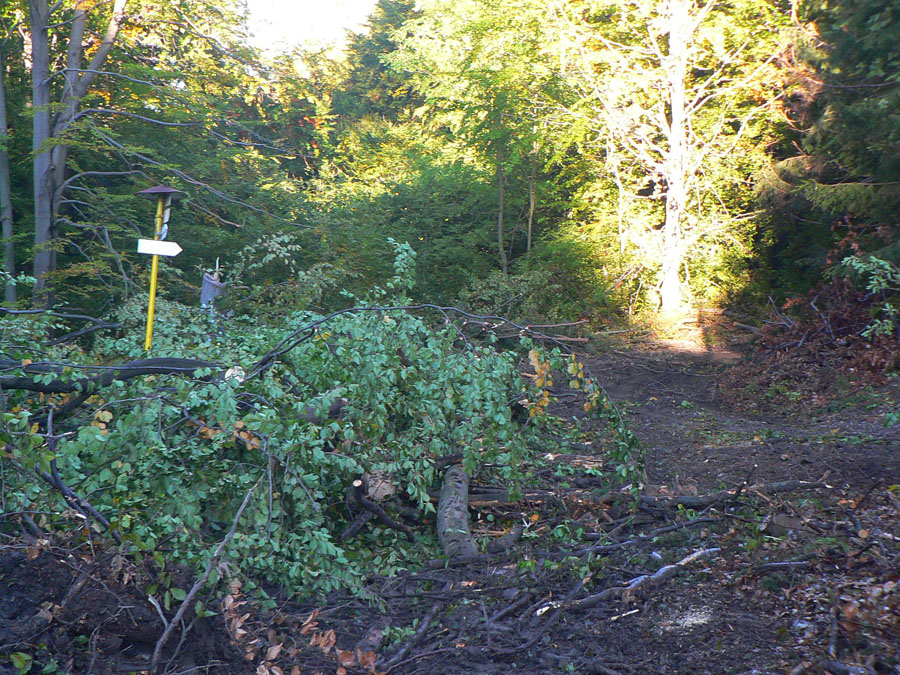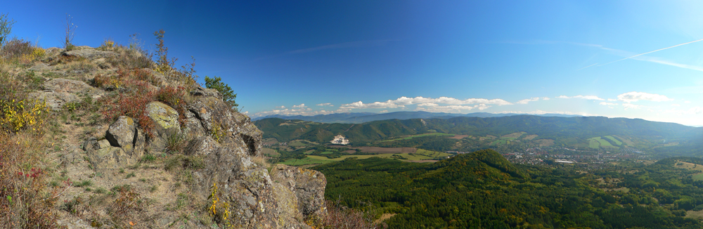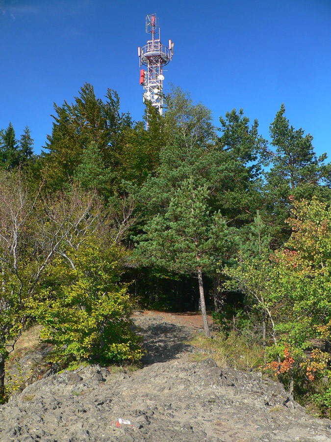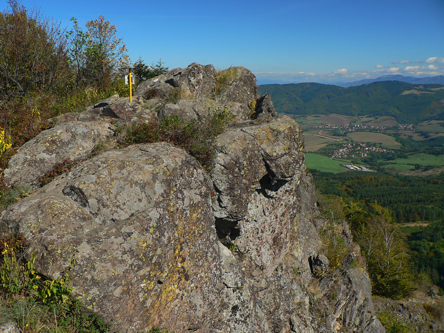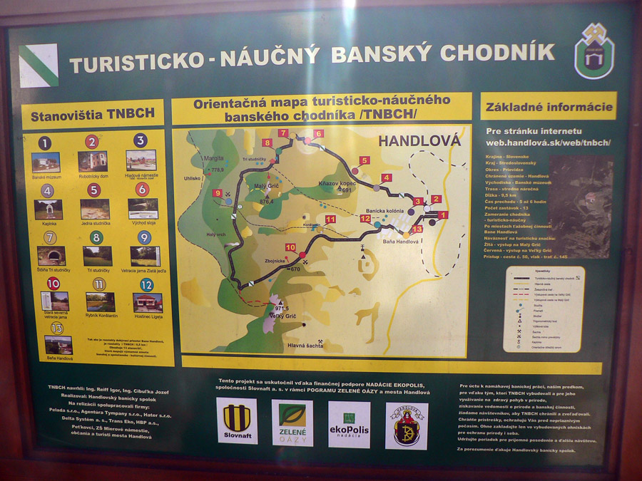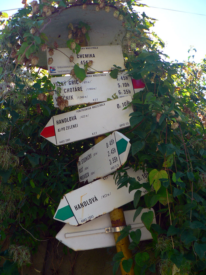Na kopci zas fotoorgie, ako japonský turista. Aj smerová ružica je tu, aj horolezci tu majú svoju vrcholovú knižku, aj čas obeda už nastal, tak sa zdržiavam dlhšie. Mierny vánok, slniečko, babie leto ako lusk! Tu tak môcť sedieť a nemusieť ísť... Ale aj cesta do Handlovej je príjemná, lesom a lúkami, po trase relatívne nového (a relatívne zachovalého) náučného chodníka. Len tých odpadkov okolo každého ohniska či prístrešku, to už som dávno nevidel. Čo za prasce to sem chodia???
