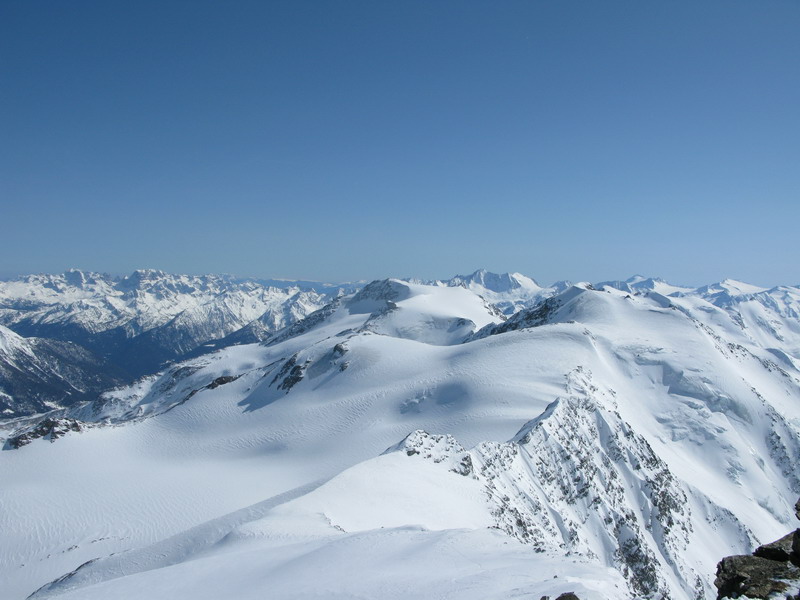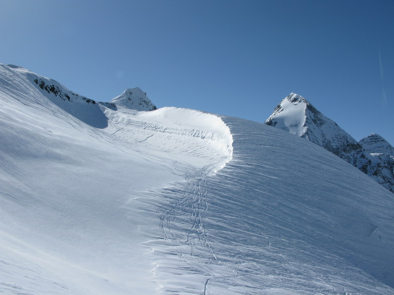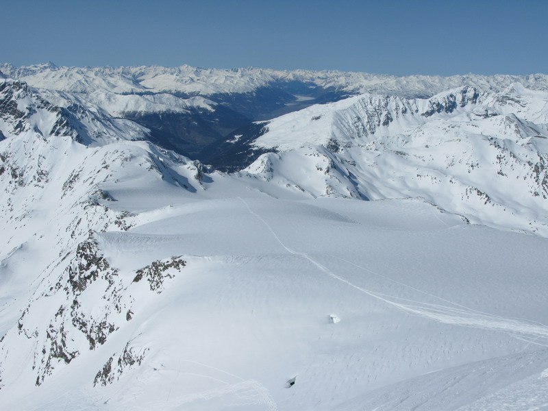 V utorok som využil pekné počasie na prieskumnú túru smer Cevedale. Po troch dňoch škaredého počasia pribudlo hore veľa snehu ale stopa už bola poobede prešlapaná. Nechcelo sa mi kupovať lístok a potom ešte čakať na lanovku, tak som vyrazil zdola. Zobral som si "stredne ťažkú" výstroj, chcel som si aspoň trochu užiť aj zjazd. Nakoniec som to rýpal rovno dole, ale tvrdšie lyže som ocenil. Počasie bolo super, presne ako treba na tento vyhliadkový vrchol. Zdola som na Cevedale šliapal prvý raz, výsledný čas: 2h50min. cca 1900v.m.Tento aktuál venujem špeciálne tým, čo tu budú šliapať už onedlho. Hádam nám vyjdú aj podobné dni...