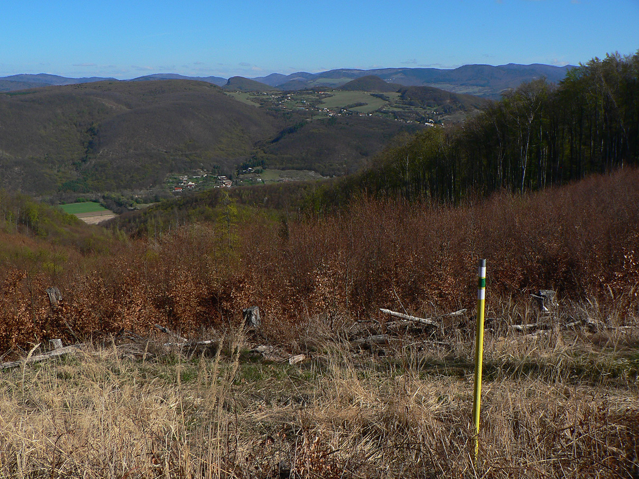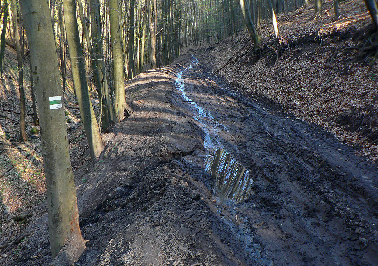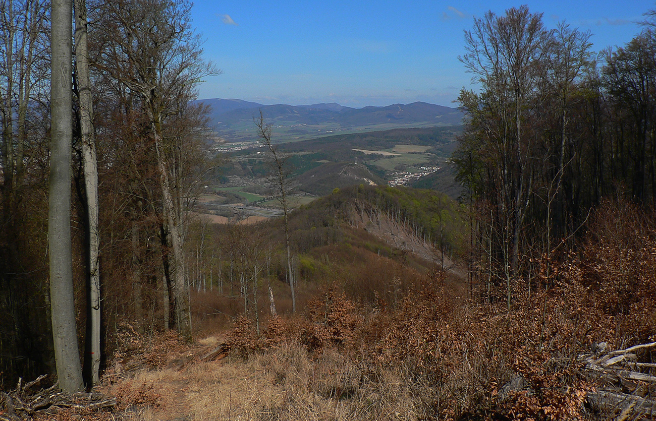 Potom sa to už príjemne strieda, ako som vyššie písal, len niektoré úseky lesných ciest boli akurát poriadne „roztraktorované“ po približovaní dreva. Pod kopcom Suť (718 m) tiež dobre padla odbočka z blata zvážnice - akurát, že priamo do poriadne strmej a hrboľatej "steny". Ale hore odmena v podobe výhľadu - tentokrát na juh, až k Sitnu.