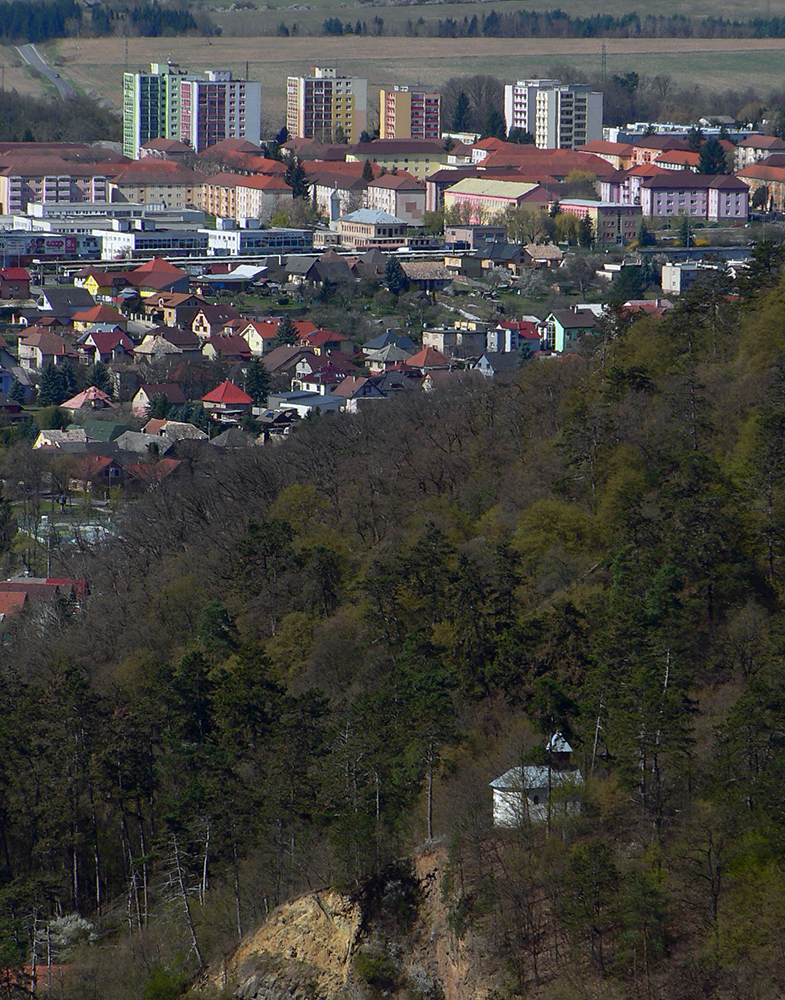 Zbeh na sever je tiež strmý a po chodníku, ale už nie taký brutál ako výstup z juhu. A keď som sa pri železnici napojil na modrú značku náučného chodníka, až do konca to už boli pohodlné cesty s (relatívne) miernymi sklonmi, cez Jastrabú a na konci samozrejme asfaltky. Aspoň už mi nehrozilo pri tom šmatlaní zakopnutie a držkopád. Od Pitelovej pribudlo výhľadov, bonusom je tu prechod krížom cez solárnu elektráreň :-) A v stúpaní z Jastrabej potešili dve Filandove studničky Snoža a Budiná (https://filhistory.wbl.sk/Murovane-pramene.html).