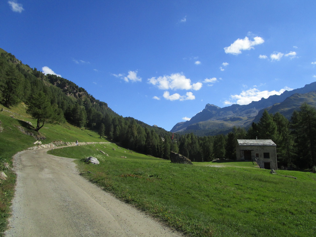 Vyrážam na bajku z dobre známeho parkoviska Sfazú na švajčiarskej strane medzi Poschiavom a passom Bernina. Šotolinou sa cez Val di Campo dostávam hore až na Švajčiarsko-Taliansku hranicu. Úseky na záverečnom traily musím samozrejme tlačiť, nevadí vynahradím si to cestou nazad. Po ceste mám viacero chát: Saoseo v doline Val di Campo, za hranicou je Rifugio Viola a odtiaľ mierim k tretej chate: Rifugio Federico Valgoi ktoré spravuje rodina talianskej skialpinistickej legendy Adriana Greca.