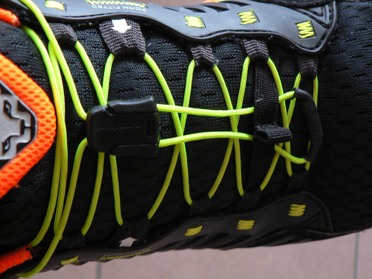 Sadli mi až na drobnosti úplne parádne od začiatku, ale to je samozrejme individuálne. Vrch jazyka, o ktorom som myslel, že pri dlhších štrekách ma bude rezať do ohybu nad priehlavkom, nerezal. Po prvých pocitoch, že sú mi vpredu (za prstami) trochu priúzke, sa po niekoľkých dlhších behoch a pobytoch v práčke roztiahli až tak, že predok nohy mi v nich pocitovo až moc plával. Ale stačilo sa pohrať so zaťahovaním šnúrok... Doslova pohrať, lebo to sťahovanie drží poriadne tam, kam ho človek utiahne. Čiže stiahneš lepšie a hneď to cítiš na priehlavku, ako tŕpne. Tu by možno bolo plusom hustejšie šnurovanie, predsa len tie šnúrky (alebo skôr lanká) sú dosť tenké. Ale zas háčiky návlekov na nich dobre držia :-)