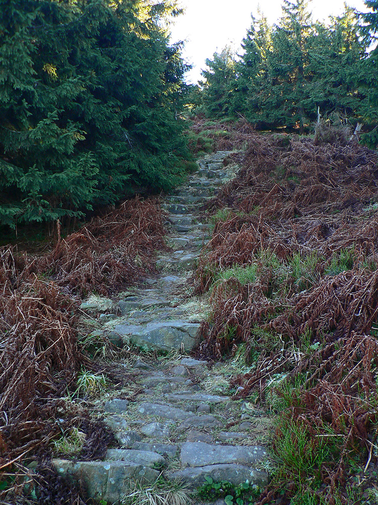Posledné a najdlhšie stúpanie na koniec – na Malú Babiu horu. Najskôr široký hraničný priesek, potom uvítacia tabuľa a prístrešok pri vstupe do „Parku narodowego“ a potom už len strmý chodník. Len sa poľskej strane taký pralesovitý, na našej furt presvitajú rúbaniská. Vyššie sa stromy zmenšia, priestor sa viac otvorí do šírky, pred vrcholom pod nohami dokonca „dlažba a schody“. Ale výhľady sú až zhora, od vrcholového smerovníka. Zase najlepšie do Poľska, na našej strane zavadzia slnko.