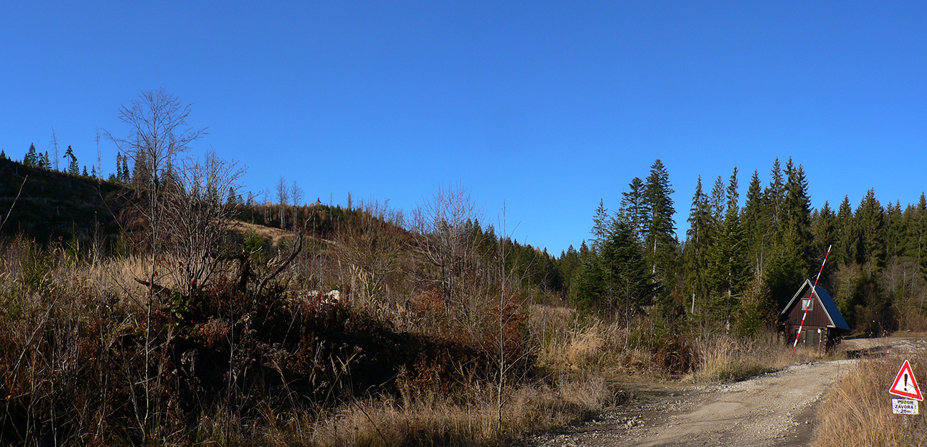 Smerovník ukazuje tri hodiny do Oravskej Polhory k busu, mám dve :-) Tak trochu kopem do vrtule. Najskôr chvíľa kľučkovania po holiach pomedzi kosovku a jalovce, potom strmo dole lesom. Žiaľ, veľmi rýchlo sa chodník mení na hnusnú zvážnicu – ja som ju mal navyše čerstvo načechranú po ťahaní dreva. Takto až po smerovník Borsučie, potom znovu príjemnejší chodník, až dole k potoku. A tam už klasika, najskôr šotolina, potom asfalt. Napriek tomu prechádzka príjemná, lesy tu vyzerajú zväčša dobre. Jasné, že sa v nich hospodári, veď drevo treba. Len by to mohlo ísť bez idiotských nápisov o „ochrane pôdy“ alebo o „lesoch ako chrámoch harmónie“. Najmä v susedstve obrovskej rúbane to pôsobí – no ako to slušne povedať? Škodoradostne?