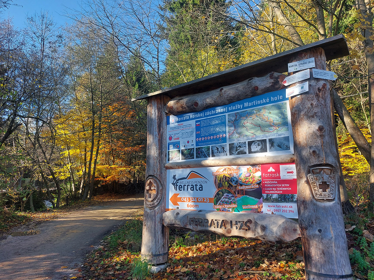 Napríklad niektoré pôvodné drevené mostíky dávno doslúžili, dnes sú všetky hliníkové. Aj technické prvky boli na niektorých miestach nahradené a niekde aj trochu posunuté. Takže vychutnajte si fotečky z celej, vynovenej, opravenej a hlavne miestami aj jesenne plnofarebnej feratky, najstaršej na Slovensku. Popisy som pod fotky moc nedával, len tam, kam treba, žeby bolo všetko jasné :-) Šťastnú cestu!