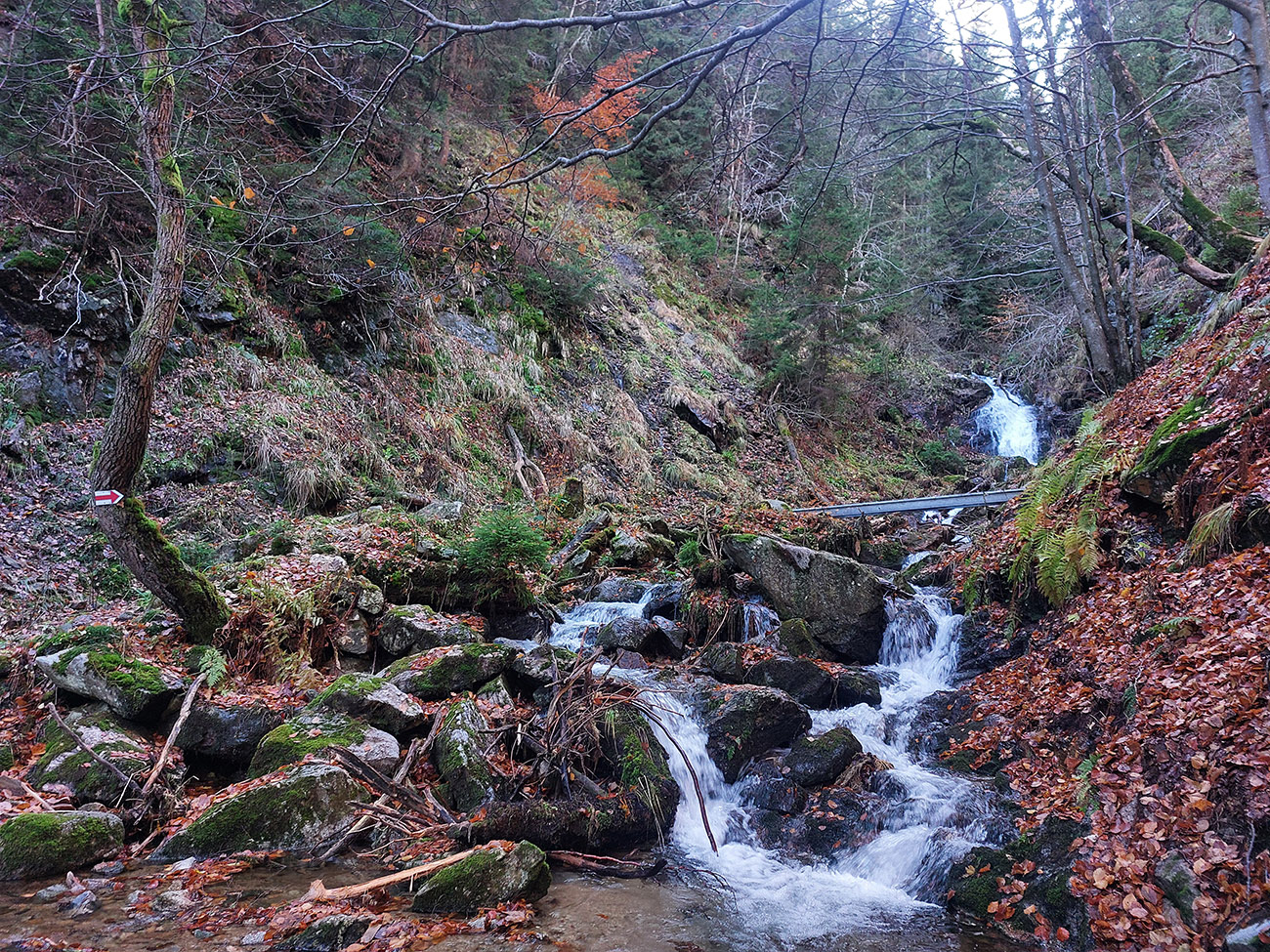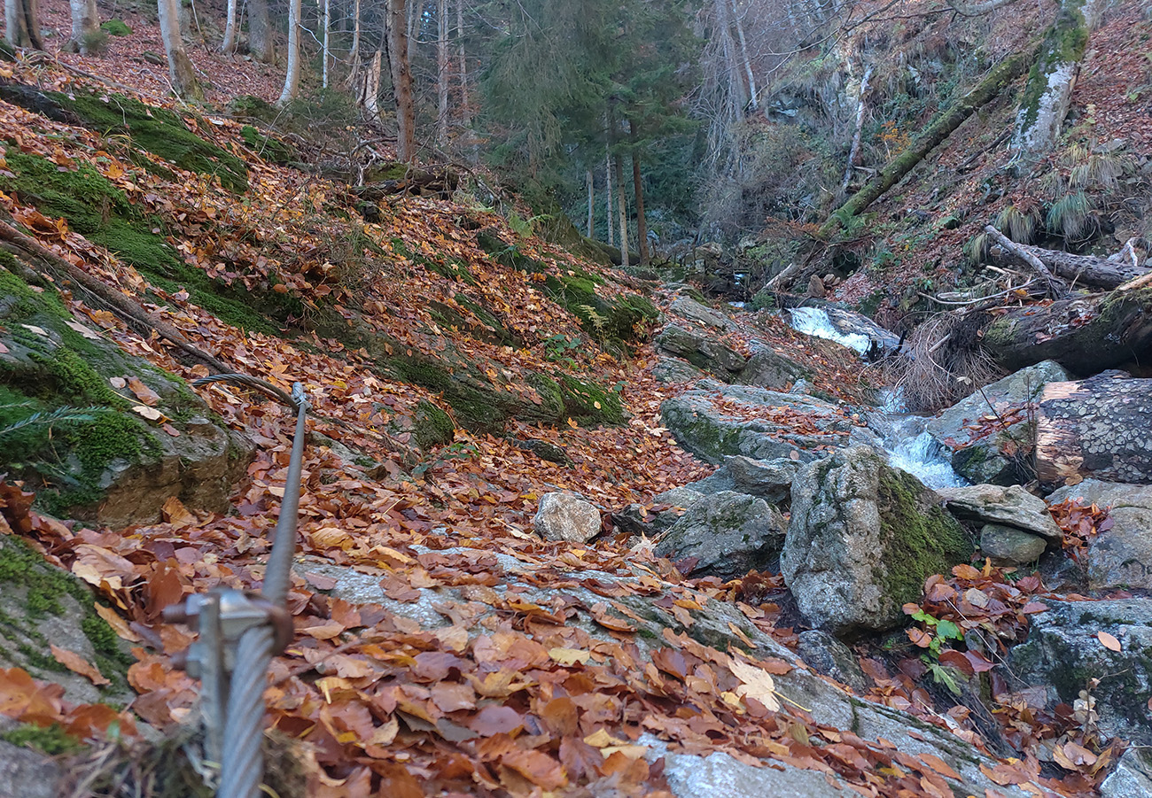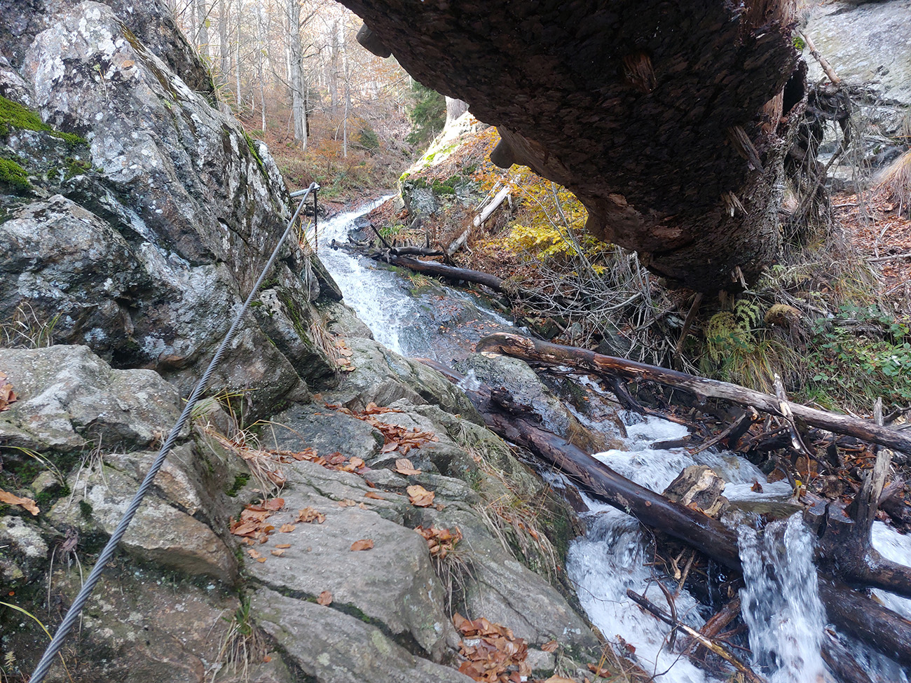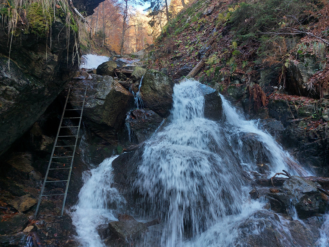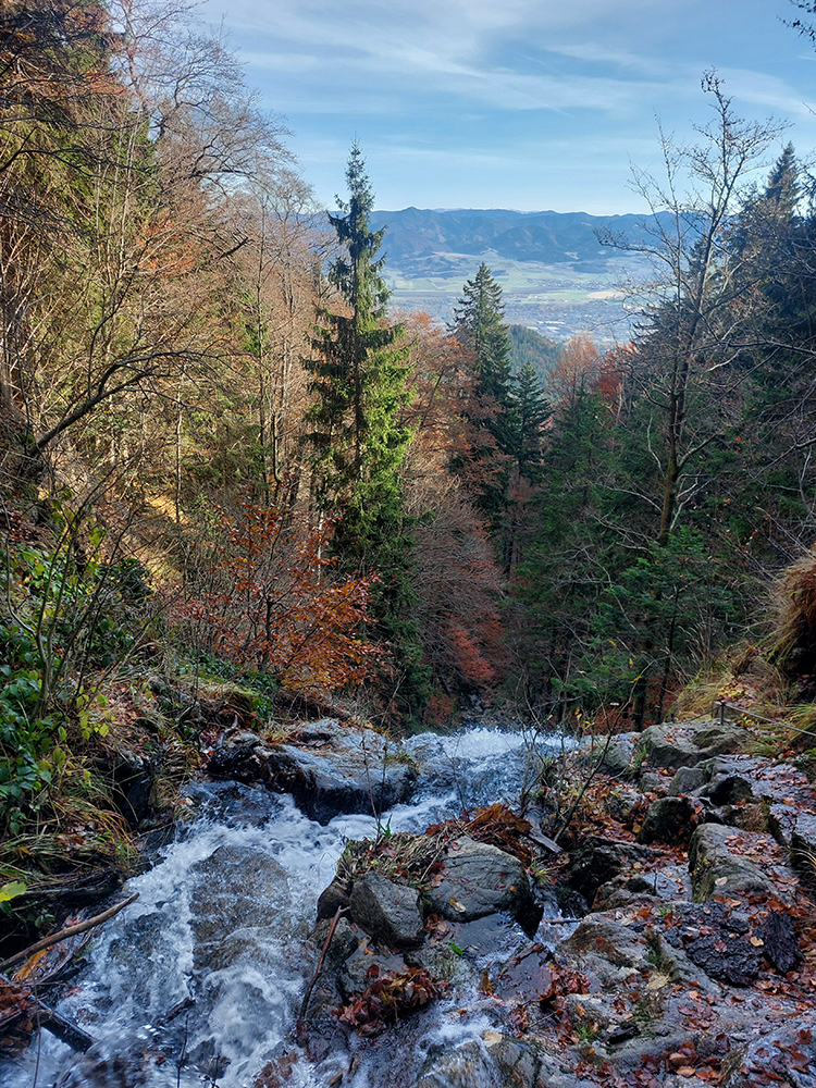 Po silných búrkach v polovici septembra sa Mlynskou dolinou a jej Pivovarským potokom prehnala blesková povodeň a trochu to tam „upratala“. Potok si na pár miestach preložil koryto, najmä v spodnej časti červeno značeného chodníka, hneď nad chatami. Aj parkovisko trochu „upravil“ a pobabral pár kusov vybavenia ferraty. Bežala zbierka na Donio.sk a jesennú sezónnu uzáveru využili dobrovoľníci na pár nevyhnutných opráv a aj úprav chodníka. Potom už jelene doručali, tak od 1.11. je ferrata otvorená znovu, je komfortne priechodná v celej dĺžke: niečo vyše štyroch kilometrov a 750 výškových metrov. Viac údajov škoda dávať, všetko je na STRÁNKE ferraty, a aj tak to tam už všetci poznajú :-) Jesenné usmoklené počasie sa ale pred dušičkovým víkendom konečne umúdrilo a nechalo prírode naplno sa vyfarbiť, no nechoď tam...