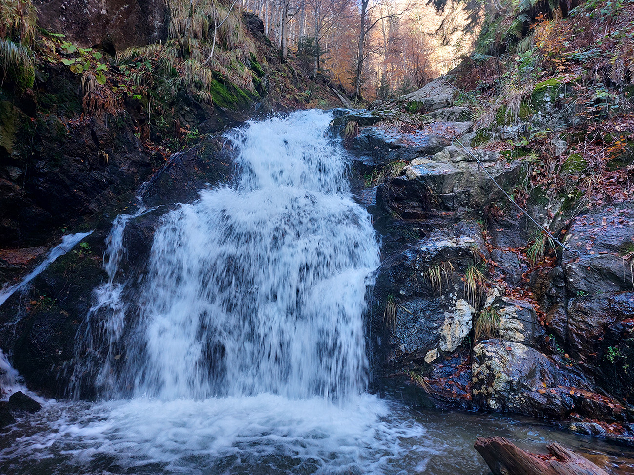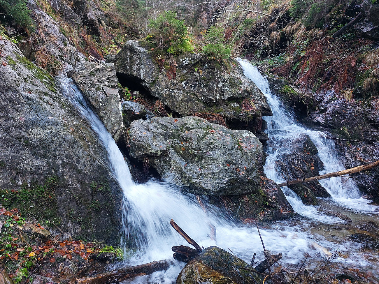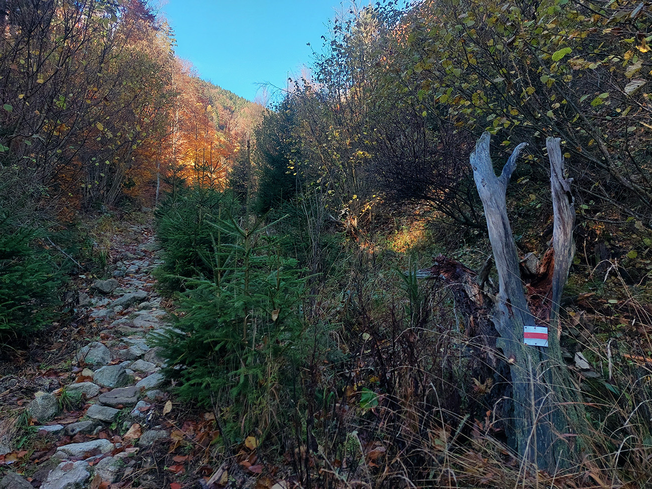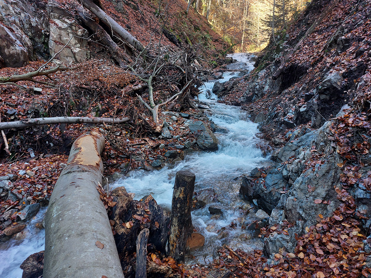 Po silných búrkach v polovici septembra sa Mlynskou dolinou a jej Pivovarským potokom prehnala blesková povodeň a trochu to tam „upratala“. Potok si na pár miestach preložil koryto, najmä v spodnej časti červeno značeného chodníka, hneď nad chatami. Aj parkovisko trochu „upravil“ a pobabral pár kusov vybavenia ferraty. Bežala zbierka na Donio.sk a jesennú sezónnu uzáveru využili dobrovoľníci na pár nevyhnutných opráv a aj úprav chodníka. Potom už jelene doručali, tak od 1.11. je ferrata otvorená znovu, je komfortne priechodná v celej dĺžke: niečo vyše štyroch kilometrov a 750 výškových metrov. Viac údajov škoda dávať, všetko je na STRÁNKE ferraty, a aj tak to tam už všetci poznajú :-) Jesenné usmoklené počasie sa ale pred dušičkovým víkendom konečne umúdrilo a nechalo prírode naplno sa vyfarbiť, no nechoď tam...