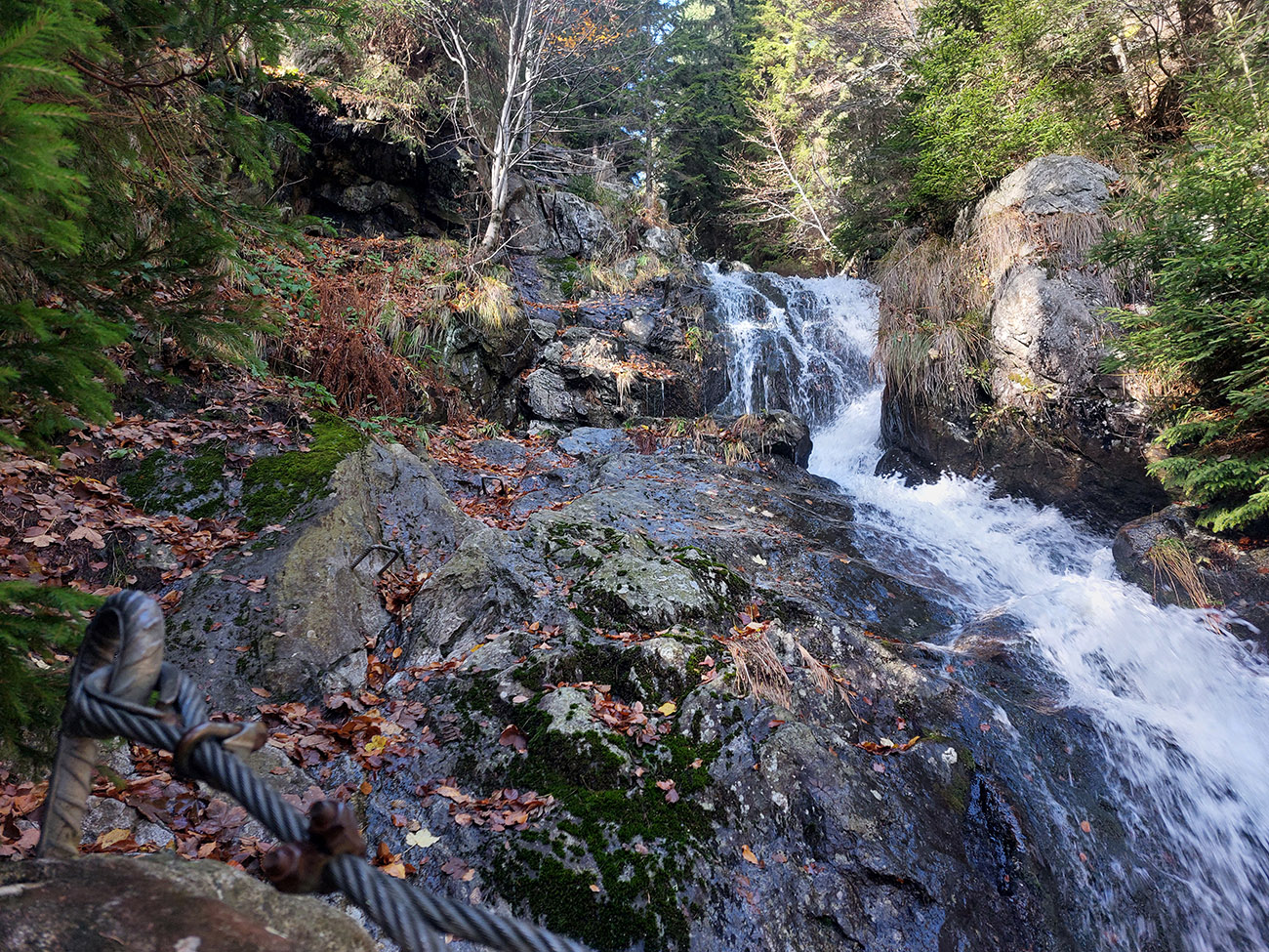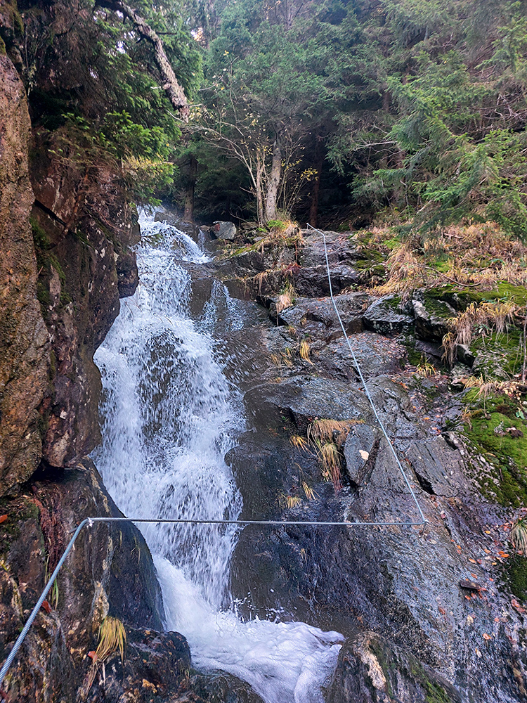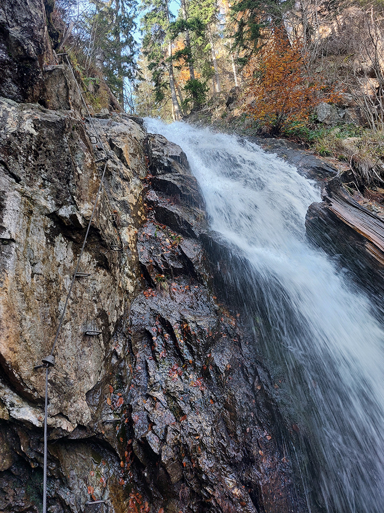Len pre pripomenutie: náročnosť A, B, v závere pravej vetvy kúsok C (aj so sprchovaním ako bonusom), len na niektorých miestach, popri niektorých vodopádoch tí s kratšími nohami môžu mať trochu problém dočiahnuť stúpačky, inak to nie je náročné. Zato krásne, ako vieme.