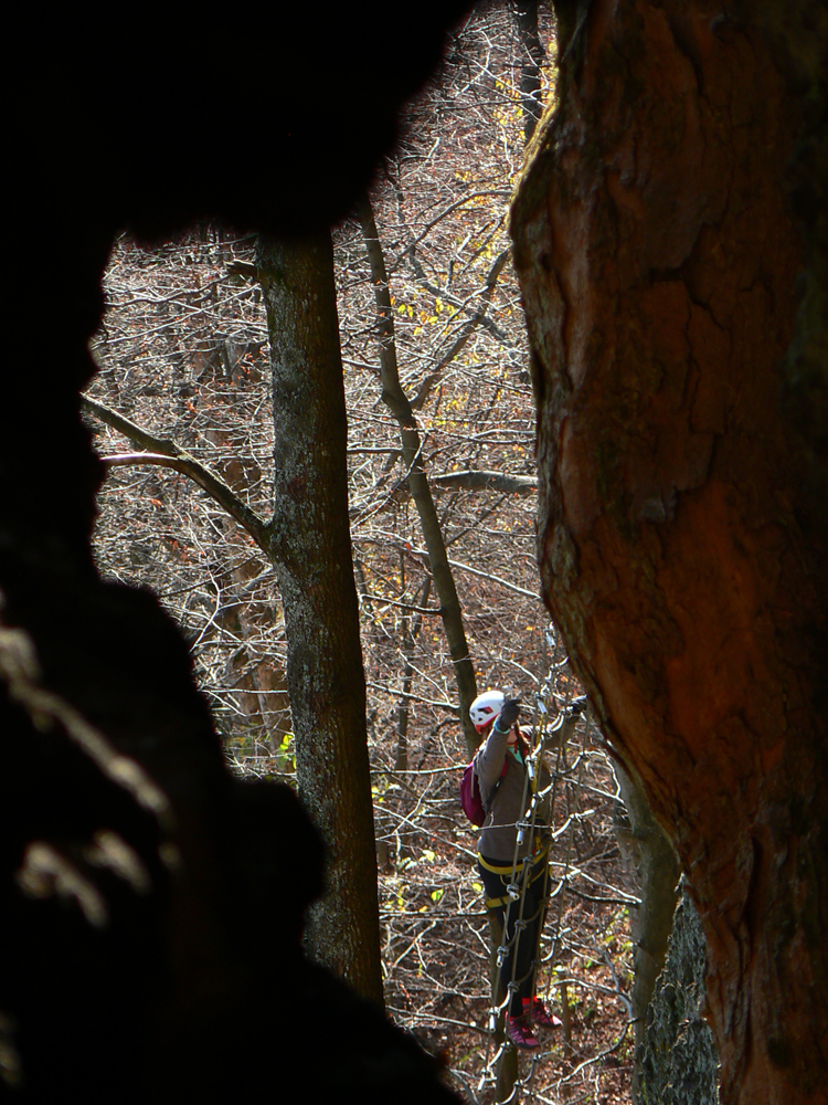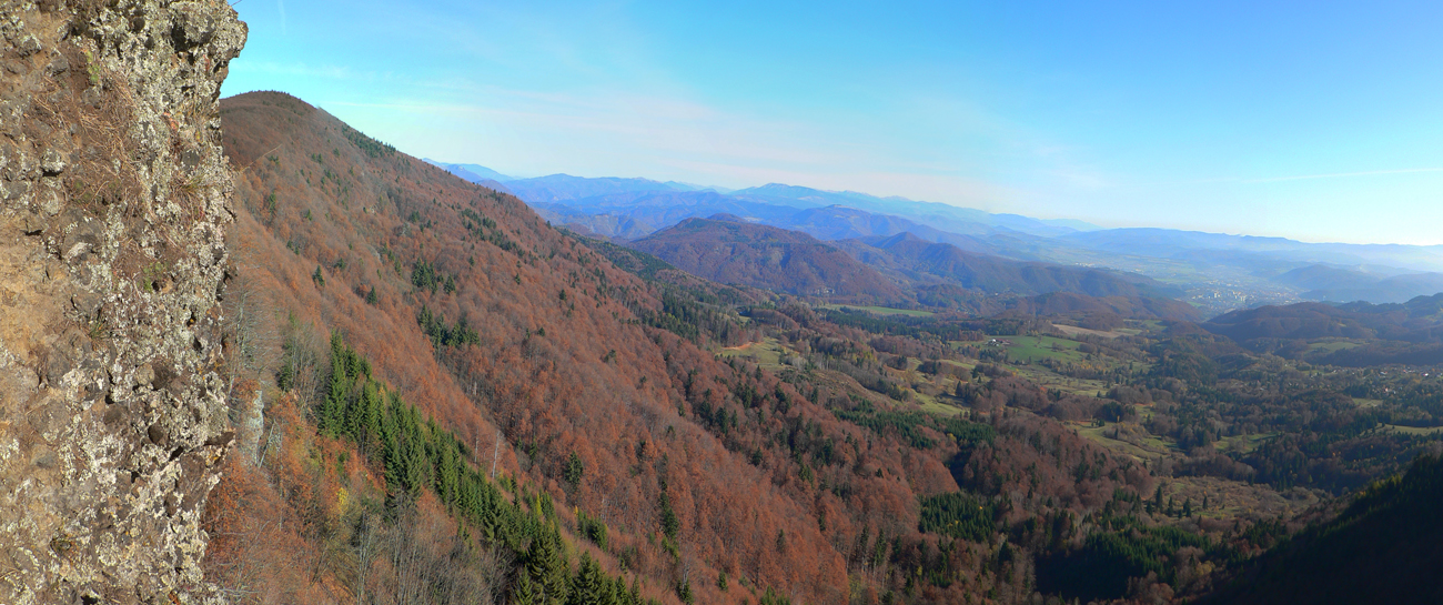 Hrebeň Kremnických vrchov nad rekreačným strediskom Skalka padá smerom na východ poriadne prudko do Kordíckej brázdy. V sopečných andezitoch a ich aglomerátoch tu vznikli celé skalné mestá s početnými vežami - vidieť ich až z Banskej Bystrice. V južnej časti najväčšieho z nich bola vybudovaná (a v októbri 2017 sprístupnená) malá ferratová oblasť. Až teraz, po dvoch rokoch, som sa tam konečne dostal, poriadnejšie to zdokumentovať oproti pôvodnému článku (ten je tu) a užiť si jeden z posledných slnečných októbrových dní.
