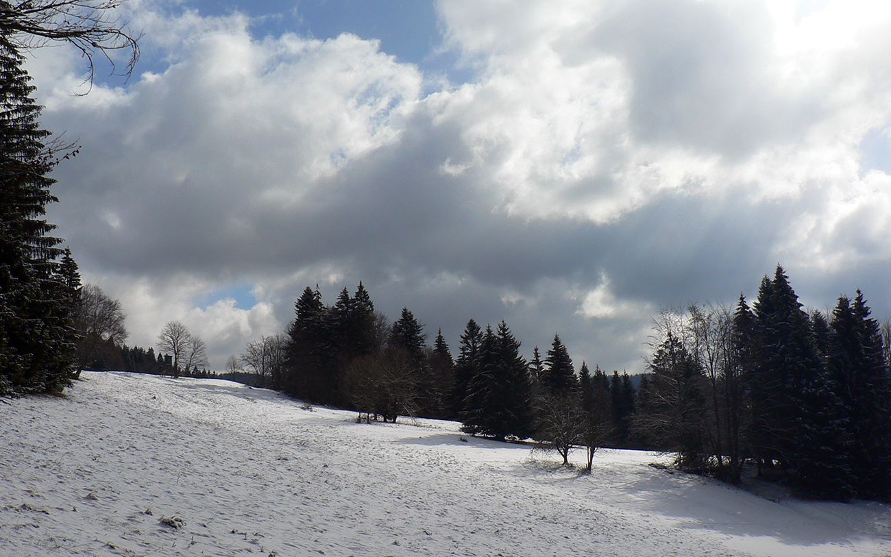 Perfektne fungujúci Murphyho zákon priniesol po predčasnej jari studený front presne pred prvým marcovým víkendom. Čiže po krásnych a teplých pracovných dňoch sobota veterná, studená, všetko zamrznuté na kosť, alebo skôr na čistý ľad. A navyše prikryté centimetrom prašanu, ktorý parádne maskoval žraloky a iné zákernosti, ktoré predošlé odmäky vyplavili "na hladinu". Takže vôbec sa mi nechcelo trepať lyže niekam, kde ich budem musieť najskôr hodinu vynášať a potom budem nimi po ľade škrípať. A všetky vnútrookresné šliapacie lokality budú aj tak isto preľudnené. Do ticha lesa sa mi zažiadalo - a bez záťaží. Tak mi oko na mape padlo na lesné cesty na konci Jasenskej doliny veľkofatranskej, pod Lyscom. Keďže dolina je presnejšie Hornojasenská, tak začiatok symbolický, z Horného Jasena. Pekne okolo sochy pána Jessenia a potom epickejšie okolo miestneho „družstevného vleku“. Smerom do peknej, pestrej, strakatej, kopcovitej krajinky podhoria Veľkej Fatry, najprv po cezpoľných asfaltkách vhodných na rozklus.