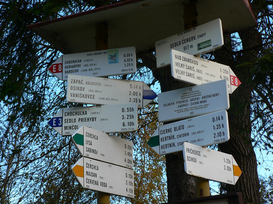 Tak začínam „hrebeňovku“ Čergova, idem z juhu na sever, od Terne cez Čergov a Minčol do Obručného. Takto sa mi to zdá podľa mapy najsympatickejšie, ale aj na autobusové spoje som viazaný. Celé to má asi 40km, prevýšenia nie sú veľké, terén mierny, flyšovo guľatý a kraj lúčno-lesný, strakatý, na výhľady bohatý. A takto v strede jesene plnofarebný. Hoci by bolo najlepšie vychutnať si ho počas dvoch dní, mám na to len jeden. Preto idem na ľahko, len v teniskách, aby som mohol pobehnúť, keby som nestíhal. Trvať by to malo okolo 12 hodín, ale mne ide autobus už o deväť :-)