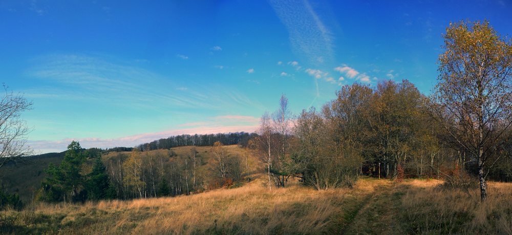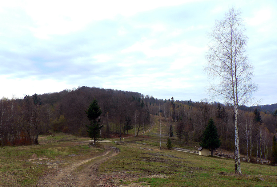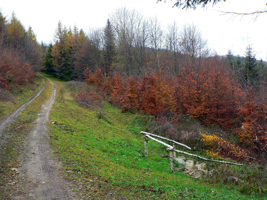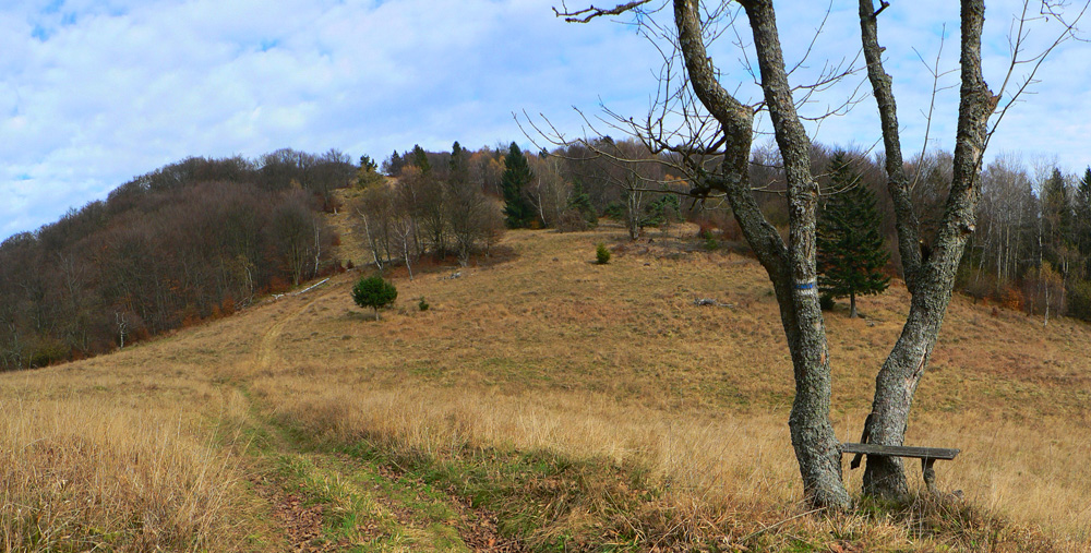 Ráno na „Všetkých svätých“ je v Prešove jasné a mrazivé, teším sa na žiarivé jesenné farby. Ale zo severu tiahne nejaká sivá vrstva, to nie je dobre. Poznáte to - tenká deka cez polovicu oblohy, akurát tam, kade sa pohybujete. V diaľke síce svieti slnko, vy ste ale just v tieni, aj keď cez mraky nad hlavou presvitajú útržky modrej. Tak aj je, keď vystupujem z autobusu v Terni - zo žiarivých jesenných farieb sa stala jednoliata, aj keď pastelová, masa bez kontrastov. Napriek tomu pohľady do krajiny sú celkom pekné - útržky rannej hmly ostali vzadu v doline a vo vrstve jasného vzduchu medzi nimi a tou sivou prikrývkou vidieť do ďaleka. Lebo prvé kilometre sú síce po asfalte, ale cesta stúpa po hrebeni pahorku medzi dvoma plytkými dolinkami. Okolo dominujú lúky.