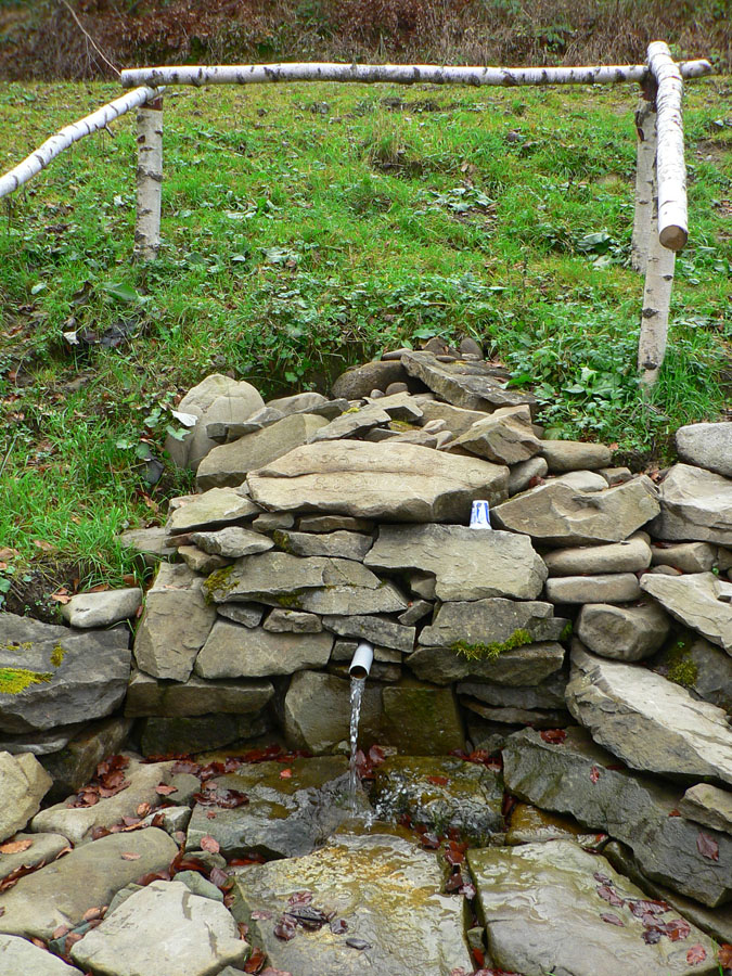 Aj na ďalšej ceste sa pod nohami pravidelne menia lúky a lesy, je nemožné zapamätať si detaily, lebo jednotlivé úseky sú si veľmi podobné, terén rovnako mierny, hore a dole, hore a dole. Prvé dlhšie a prudšie klesanie je lesom do sedla Priehyby. Okolo samé brezy, cítim sa ako niekde v tajge :-) Križujem asfaltku. Tesne za sedlom je pod cestou studnička: pekná, nová, výdatná, na kameni nápis „Horská služba Čergov 8.8.2014“. Dobre vedieť: ideálne miesto na prípadný koniec prvého dňa hrebeňovky, kúsok vyššie na lúkach sa dá komfortne stan postaviť.