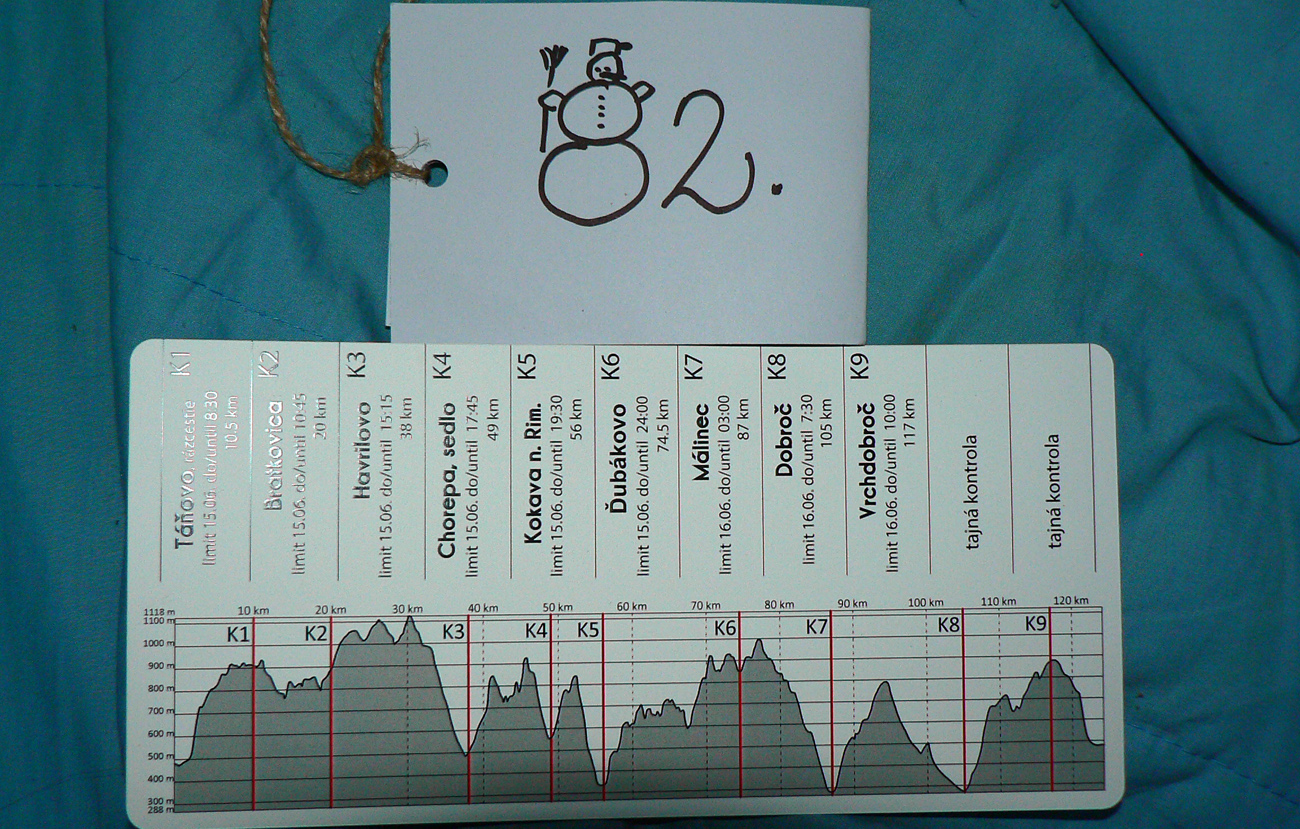 Zámer staviteľov trasy bol myslím jasný. Kontroly (krmelce) sú naschvál skoro vždy v najhlbšej jame (sedle, doline...), ktorú organizátori našli v okolí. Odtiaľ sa treba nekonečne dlho a najlepšie čo najstrmšie štverať lesom na hrebeň medzi lazy – a tam už čaká vražedné bombardovanie slnečnými lúčmi. Čerešnička na torte je 12-kilometrové stúpanie na poslednú kontrolu (K9 Vrchdobroč). To je našťastie pre väčšinu ľudí už za tmy. Ale nezávidím posledným, ktorí to išli už zase za svetla, fuj.