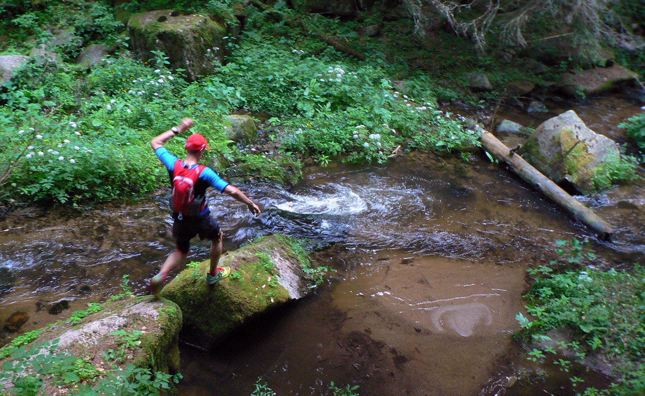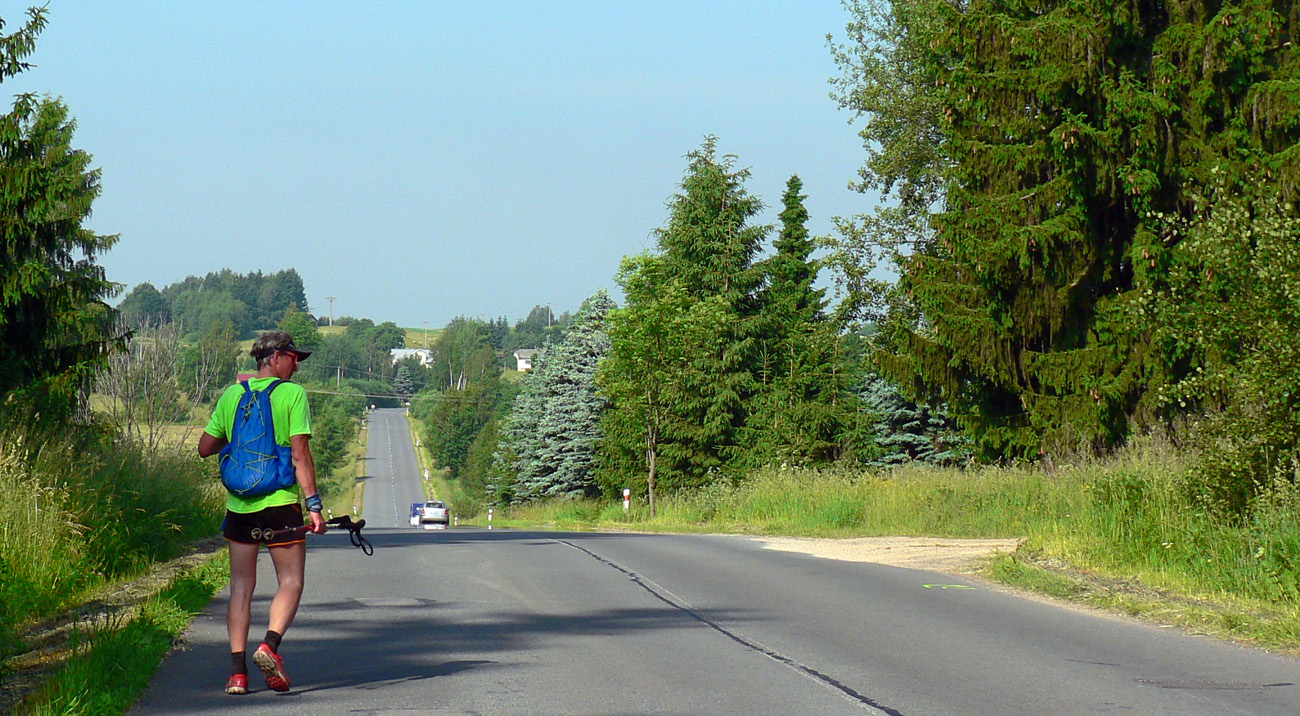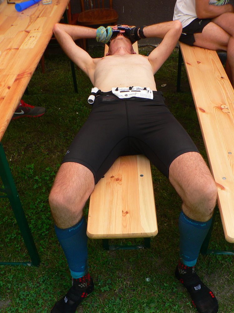Šetrím sa ako sa len dá, lebo viem, že po stovke potrebujem aspoň tri týždne na spamätanie a malofatranská megamorda je už o dva. Pomaly sa cedím poradím dozadu, ale telo aj tak dostáva poriadnu nakladačku. Slovami jedného z účastníkov: „Bežím, bežím, a zrazu zisťujem, že len turistikujem“. Pomohlo by vraziť sa do nejakého potoka a ostať tam. Ale aj použiteľnej vody je cestou málo. Do každej mláky či jarku sa aspoň na chvíľu strčím a nie som sám. Mokrá čapica na hlavu, ale aj tá len zasyčí a o chvíľu už nepomáha. Výhoda pomalosti: môžem požrať, čo príde. Niekedy sa až sám divím svojim tehotenským chutiam: na Bratkovici dyňa s klobásou, v Kokave pomaranč so syrom, v Dobroči piškóty so slaninou...