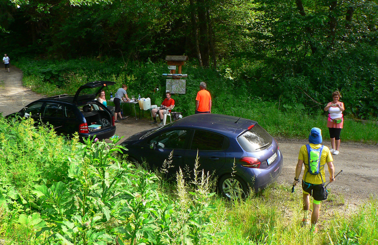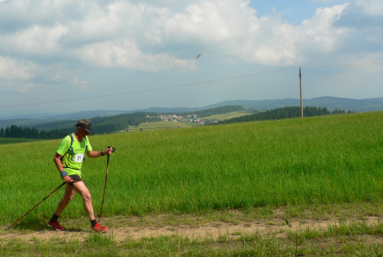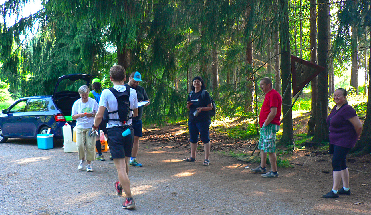 Spomaľujem skoro až do cúvania, ale aj tak predbieham stále viac motajúcich sa a na pníkoch posedávajúcich jedincov s neprítomnými pohľadmi. Čím vyššie číslo má kontrola, tým viac „nemŕtvych“ tam pri príchode nachádzam. Ale aj na čele sa kape, niektorí adepti na bedňu odpadávajú v ženskej aj mužskej kategórii. Môže mať človek skúseností koľko chce, toto počasie proste dokáže robiť s organizmom divy. Aj infúzie prichádzajú na rad. A na tie myslím nedošlo ani na rozžeravenej Východniarskej... Či hej? Každopádne jednoznačný dôkaz o brutálnosti priateľsky sa tváriacej Hriňovskej prechádzky. Keby mala aspoň normálnych 100 a nie 124 km, že?