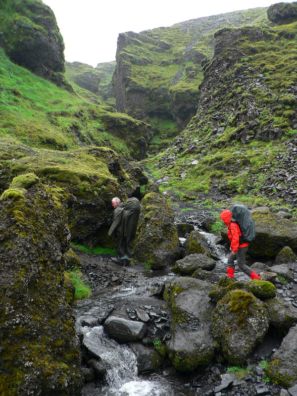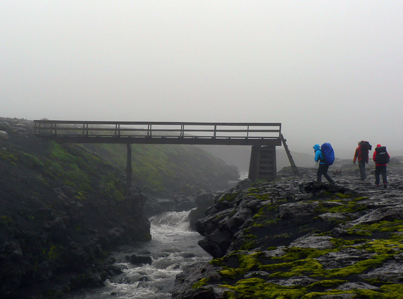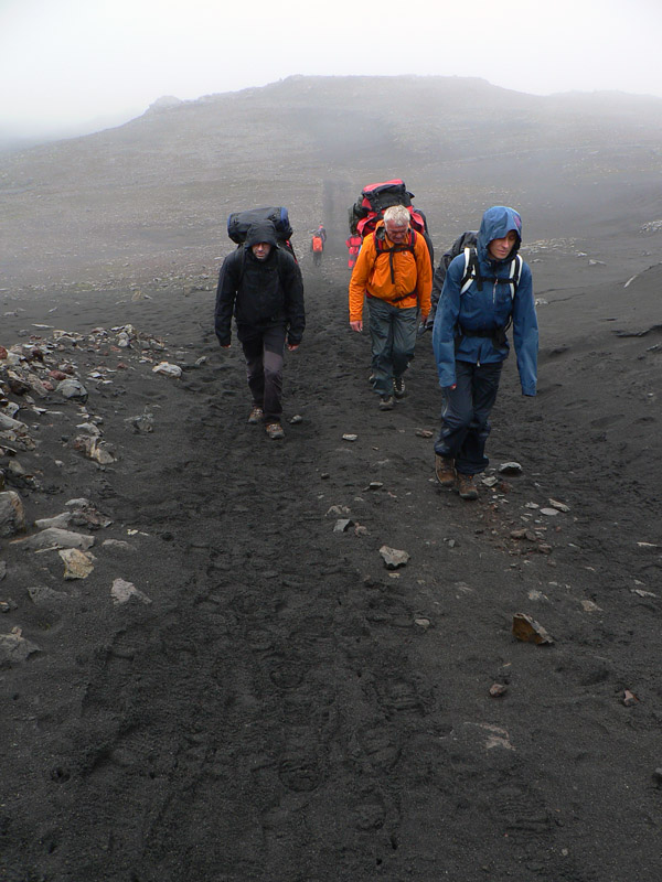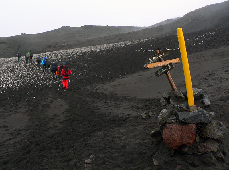 Ráno v hoteli na južnom pobreží Islandu nevyzerá moc perspektívne – vonku leje a riadne fučí, nejakých 9 stupňov, mraky sa nám váľajú nad hlavami. Našťastie to ťahá od juhu a my ideme na sever, bude nám to biť do chrbta :-) Že škaredé počasie? Nevadí, o chvíľu môže prísť ešte horšie :-) Začíname 5-dňový, asi 80-kilometrový pochod smerom do vnútrozemia ostrova. Dnešná prvá etapa zo Skógaru do Þórsmörku bude najdlhšia (asi 25km) a s najväčším prevýšením (asi 1100m). Vedie cez široké sedlo Fimmvörðuháls pomedzi ľadovce Eyjafjallajökull a Mýrdarsjökull. Pod každým z nich drieme sopka a práve tá prvá narobila vlani problémy letectvu.