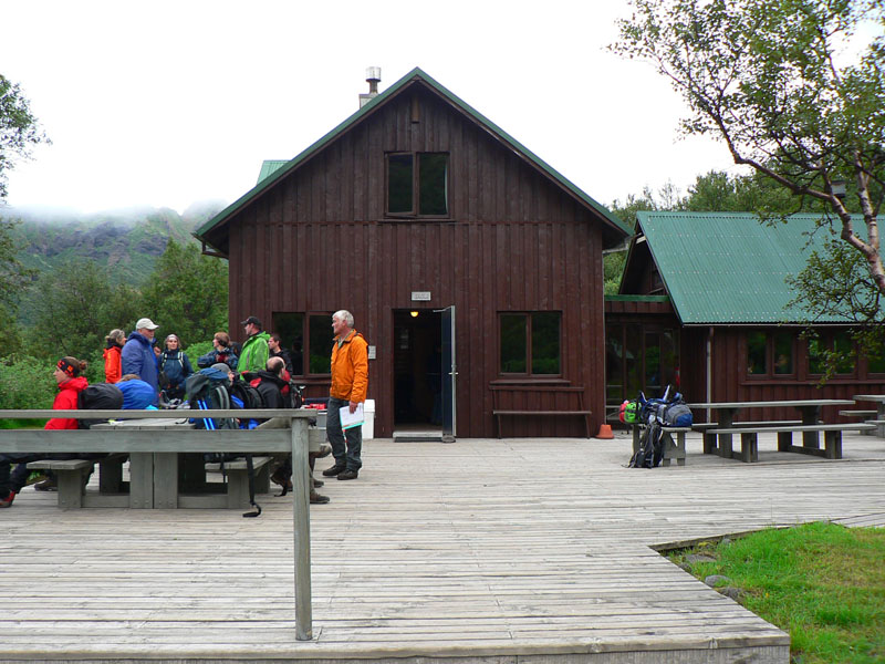 Posledný krátky úsek po zbehnutí z prudkých svahov je už po rovine riečnej doliny, chodník sa krúti riedkym porastom Þórsmörku (Thorovho lesa). Vraj ak človek v islandskom lese zablúdi, stačí aby sa postavil :-) Toto u nás ozaj narastie na rúbanisku za pár rokov, tu to ale stromčekom trvá podstatne dlhšie. Registrujeme obdivné (alebo skôr nechápavé?) pohľady výletníkov a posádok terénnych áut. Po jedenástich hodinách definitívne zhadzujeme batohy a niektorí z nás sa asi aj tešia na ďalší deň :-) Ľadovce sme síce takmer vôbec nevideli, zato sírového smradu sme sa nadýchali hojne a zmokli a uschli sme asi stokrát. Ale Nemka s ktorou debatujeme na chate to vraj ide ešte raz, lebo pred pár dňami to bolo kvôli počasiu nepriechodné. Takže sme nakoniec asi celkom dobre obišli.