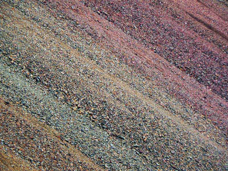 A znova trochu do kopca na ďalšiu plošinu, aby to nebolo fádne. Krajina je podobná ako včera – guľaté farebné pahorky, medzi nimi plytké dolinky so snehovými poliami. V jednej z nich k obvyklým pastelovým farbám zrazu pribúda ešte jedna, ktorú sme doteraz nevideli – zelená a v množstve odtieňov! Ale nie je to mach, aj kamene pod nohami sú zelené. V kombinácii s modro-bielym nebom je to asi najstrakatejšia kombinácia, akú sme doteraz videli:
