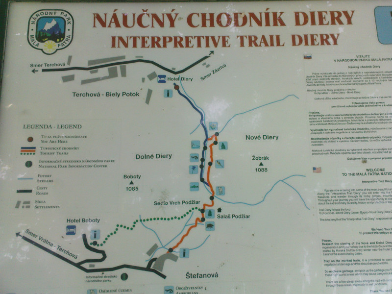 Parkovisko pri hotely praská vo švíkoch, no, bolo treba prísť skoro ráno. Nevadí, aj v Terchovej za obchodom je jedno veľké. Nie je platené, ale trošku od ruky. Cesta k hotelu Diery (lokalita Terchová - Biely potok) je z parkoviska asi pol hodinku. Tam je štart.