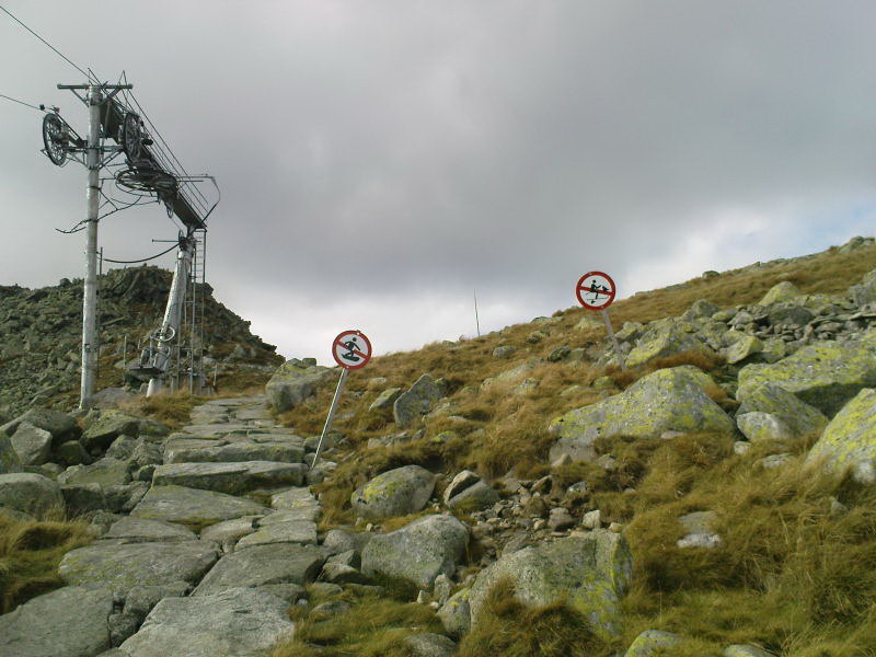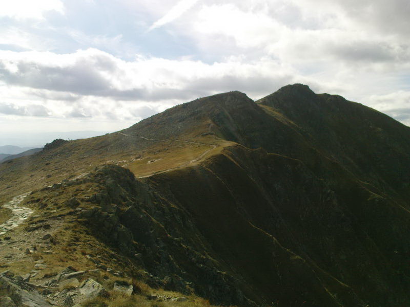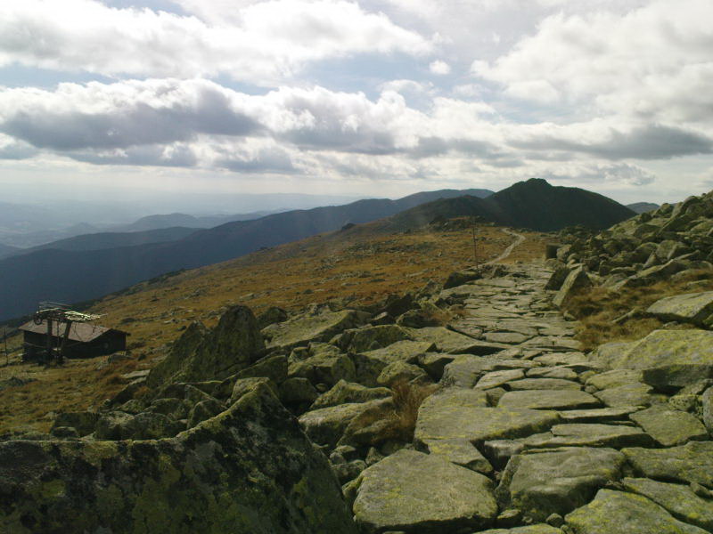 Od chaty pod Chopkom smerujeme po hrebeni na Dereše. Príjemné klesanie po vydláždeňom chodníku sa strieda s rovinkami a krátkymi výstupmi. Po pol hodine míňame smerovník na Derešoch a pokračujeme do sedla Poľany. Chodník stráži kopa kamenných mužíkov, dokonca kamenné a drevené lavičky! Na hrebeňovku celkom luxus.